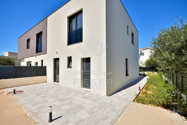 In Srima, einem ruhigen Stadtteil von Vodice, erwartet Sie diese moderne Doppelhaushälfte. Zum Strand sind es nur 200 Meter, das Ortszentrum mit Restaurants und Geschäften erreichen Sie nach 550 Metern. Zwei Stellplätze direkt am Haus sorgen für kurze Wege und sicheren Komfort. Das Haus wird in solider Bauweise errichtet und ist im Herbst 2025 bezugsfertig. So genießen Sie von Beginn an moderne Standards und hochwertige Qualität.