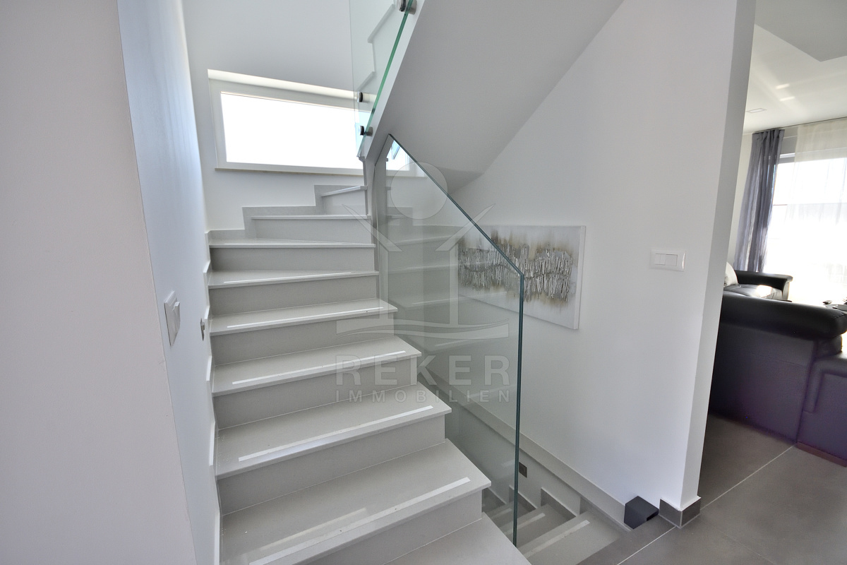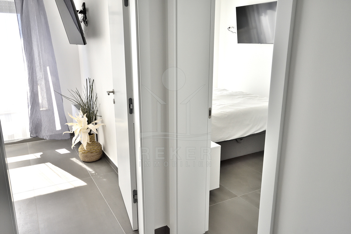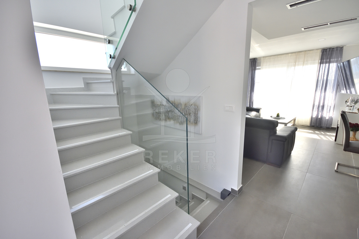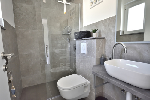 Die Haushälfte befindet sich in einem ruhigen und neu gebauten Teil von Vodice und bietet modernen Komfort in einer charmanten Umgebung. Nur 600 Meter vom Meer entfernt, können Sie die traumhaften Strände leicht erreichen. Das Zentrum von Vodice ist nur 1,4 km entfernt und bietet eine Vielzahl von Einkaufsmöglichkeiten, Restaurants und Dienstleistungen für den täglichen Bedarf. Die malerische Küstenstadt Vodice lockt mit ihrer 4 km langen Uferpromenade und einer charmanten Altstadt, die zum Bummeln und Entdecken einlädt. Vodice ist auch ein idealer Ausgangspunkt für Ausflüge in die Region Norddalmatien, darunter der Krka-Nationalpark, die Kornati-Inseln und die UNESCO-Städte Sibenik, Zadar, Trogir und Split. Mit seiner bevorzugten Lage und der Nähe zu zahlreichen Sehenswürdigkeiten garantiert dieses Anwesen ein erstklassiges Wohn- und Urlaubserlebnis.