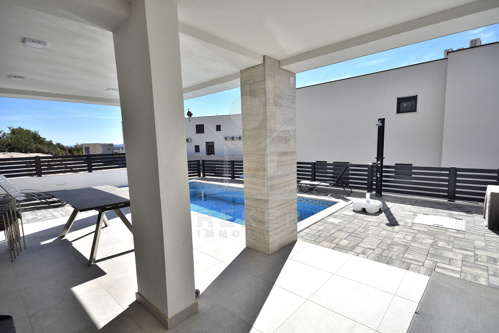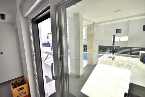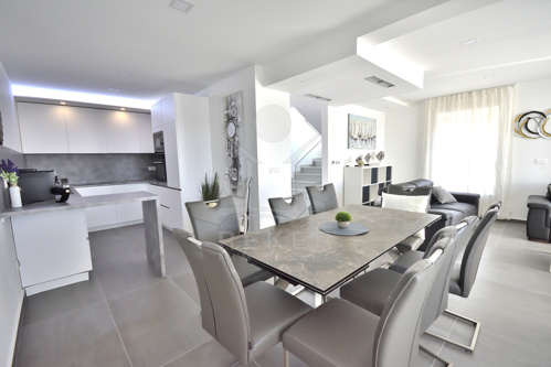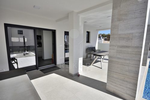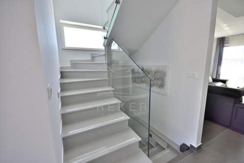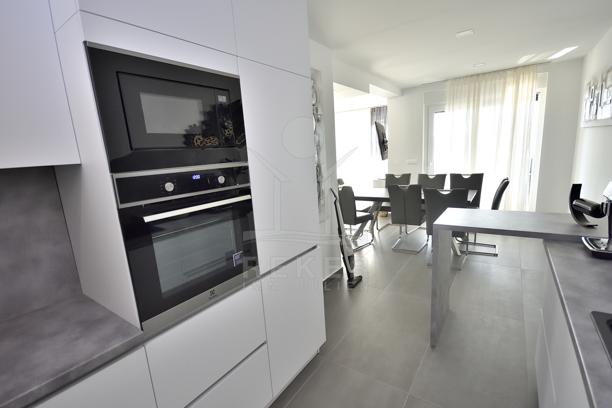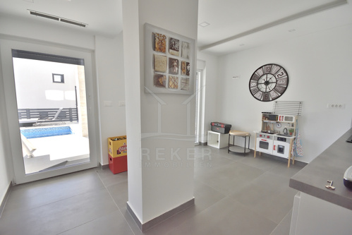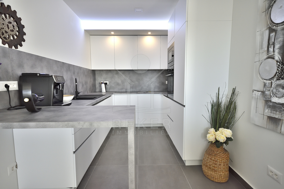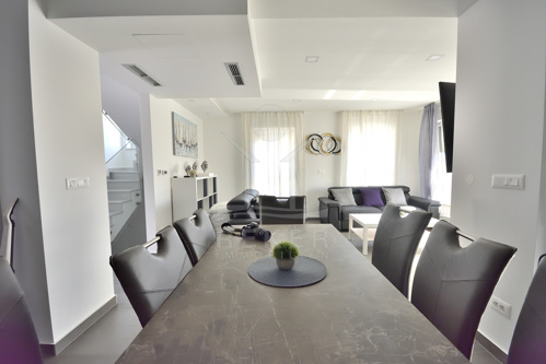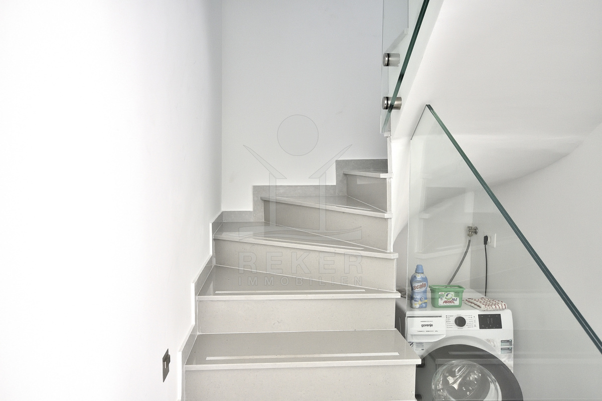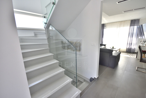 Die luxuriöse Doppelhaushälfte erstreckt sich über 2 Etagen mit einer großzügigen Wohnfläche von 186,90 m² und wurde im Jahr 2022 erbaut. Die Grundstücksfläche von 150 m² bietet eine leichte Hanglage und ist von grüner Umgebung sowie einer hügeligen Landschaft umgeben, was für ein ruhiges und idyllisches Ambiente sorgt. Die Ausstattungsmerkmale umfassen einbruchsichere Eingangstür, keramische Bodenbeläge, italienische Keramik in Bädern und Sanitäranlagen, Klimaanlage in allen Räumen, Fußbodenheizung, Wärmepumpe für das Haus und den Pool, Smart Home System sowie Videokameras für maximale Sicherheit. Mit drei Parkplätzen steht auch ausreichend Platz für Fahrzeuge zur Verfügung, um Gäste problemlos empfangen zu können. Willkommen in Ihrem luxuriösen Rückzugsort!