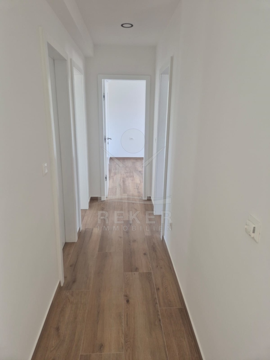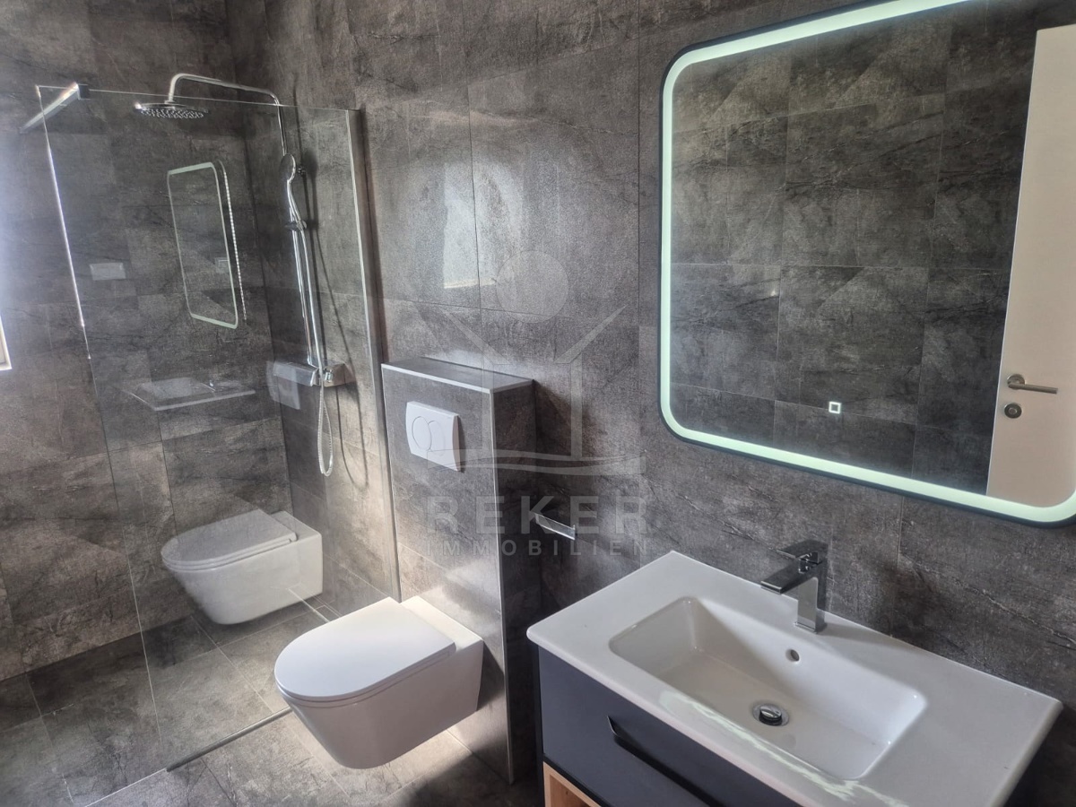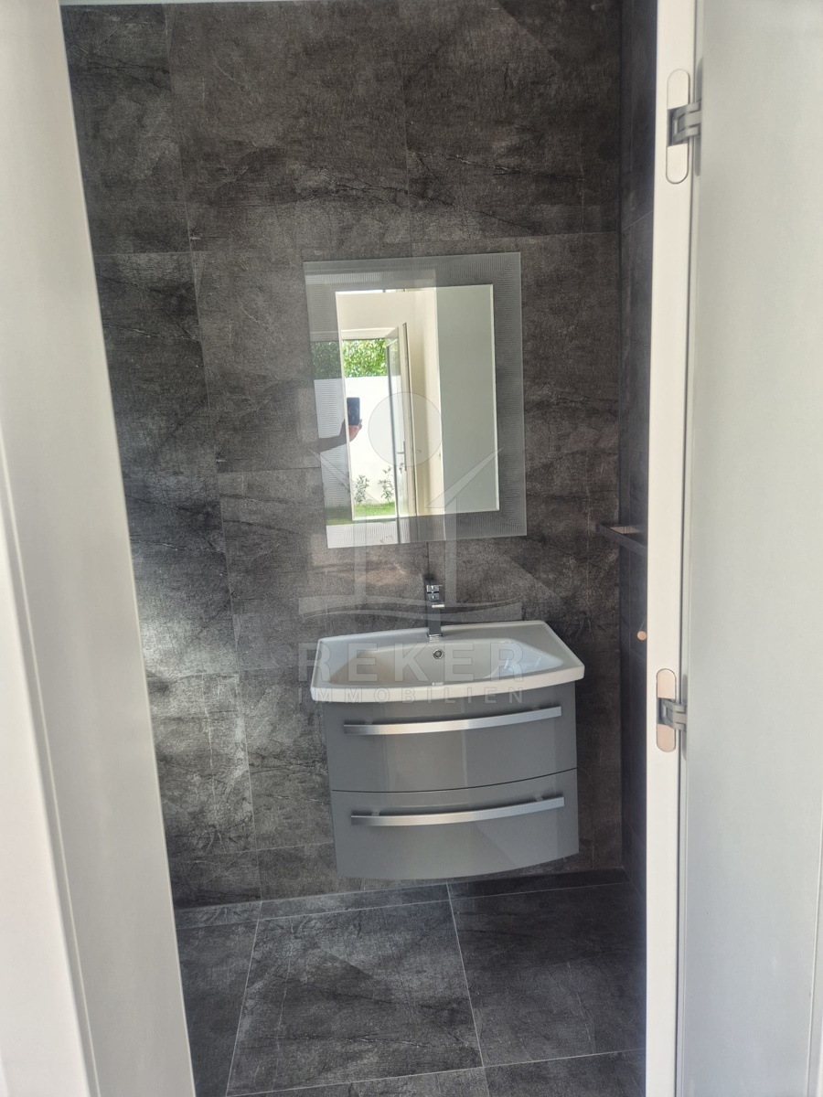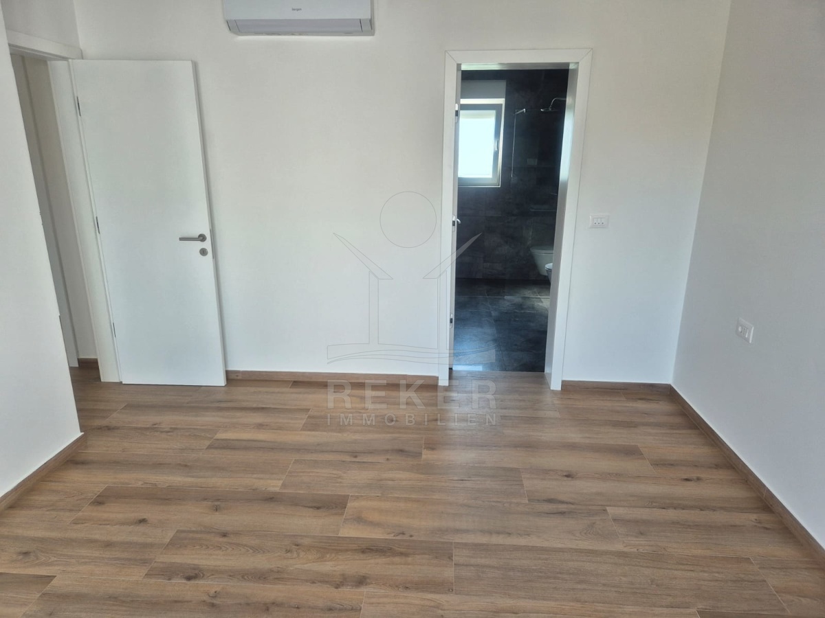Im Inneren wartet zeitgemäßer Wohnkomfort auf Sie. Das Erdgeschoss ist offen gestaltet mit einem großzügigen Wohn-, Ess- und Kochbereich. Der Zugang zur Terrasse öffnet den Raum ins Freie. Die moderne Innentreppe verbindet beide Etagen. Oben liegen drei Schlafzimmer. Das Master-Zimmer hat ein eigenes Bad und einen Balkon. Perfekt, wenn jeder seinen Rückzugsort braucht. Zwei weitere Zimmer, ein zusätzliches Bad und eine separate Waschküche machen das Haus komplett. Fußbodenheizung und Klimaanlage sind eingebaut. Die Südwest-Ausrichtung sorgt für viel Tageslicht.