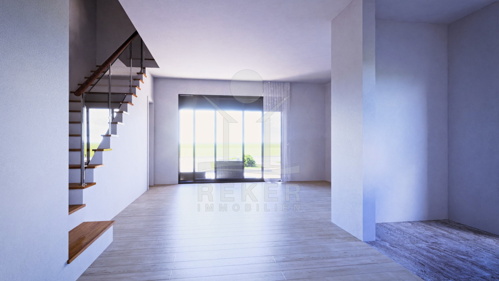 Das Haus bietet im Erdgeschoss ein offenes Konzept mit einem großzügigen Wohn-, Ess- und Küchenbereich sowie einem Badezimmer. Vom Erdgeschoss aus haben Sie Zugang zu einer Terrasse oder Loggia, die Ihnen erweiterten Wohnraum im Freien bietet. Über eine interne Treppe erreichen Sie das Obergeschoss, wo ein Flur und drei Schlafzimmer auf Sie warten. Ein weiteres Badezimmer sorgt für Komfort. Genießen Sie die frische Luft auf der Loggia/Balkon mit 3,67 m² Fläche, perfekt für entspannte Momente im Freien.