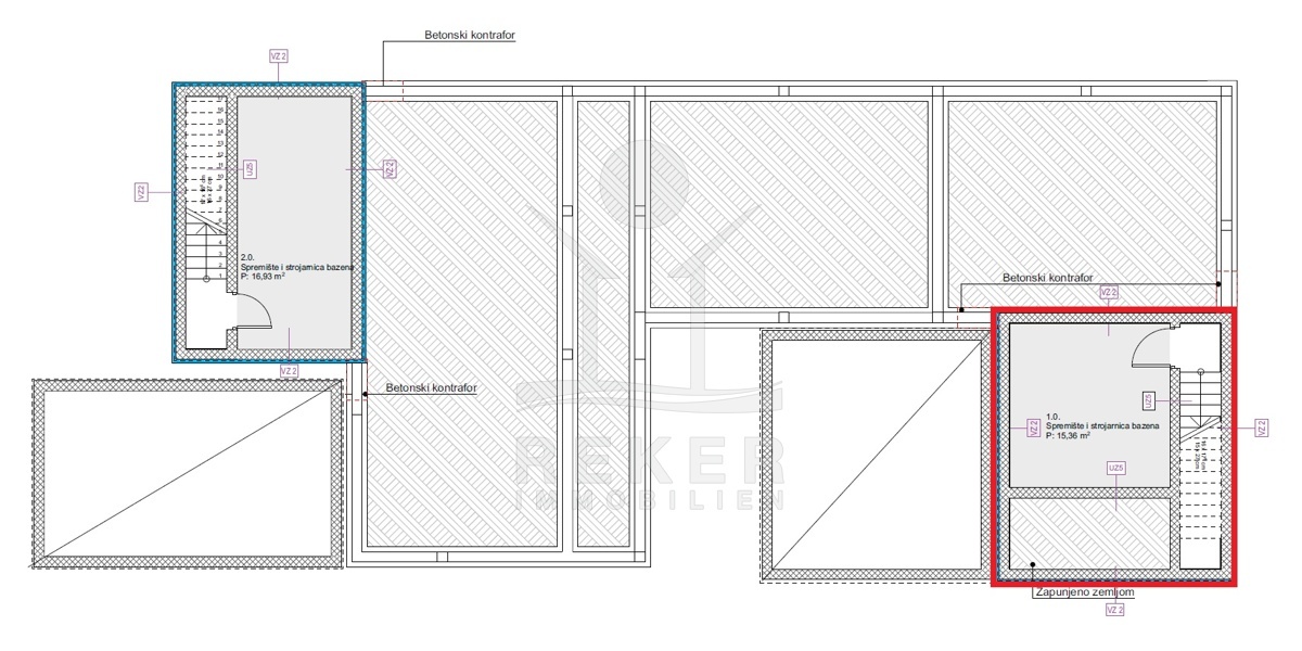 Im Keller bifindet sich ein Lager- und Maschinenraum des Pools.