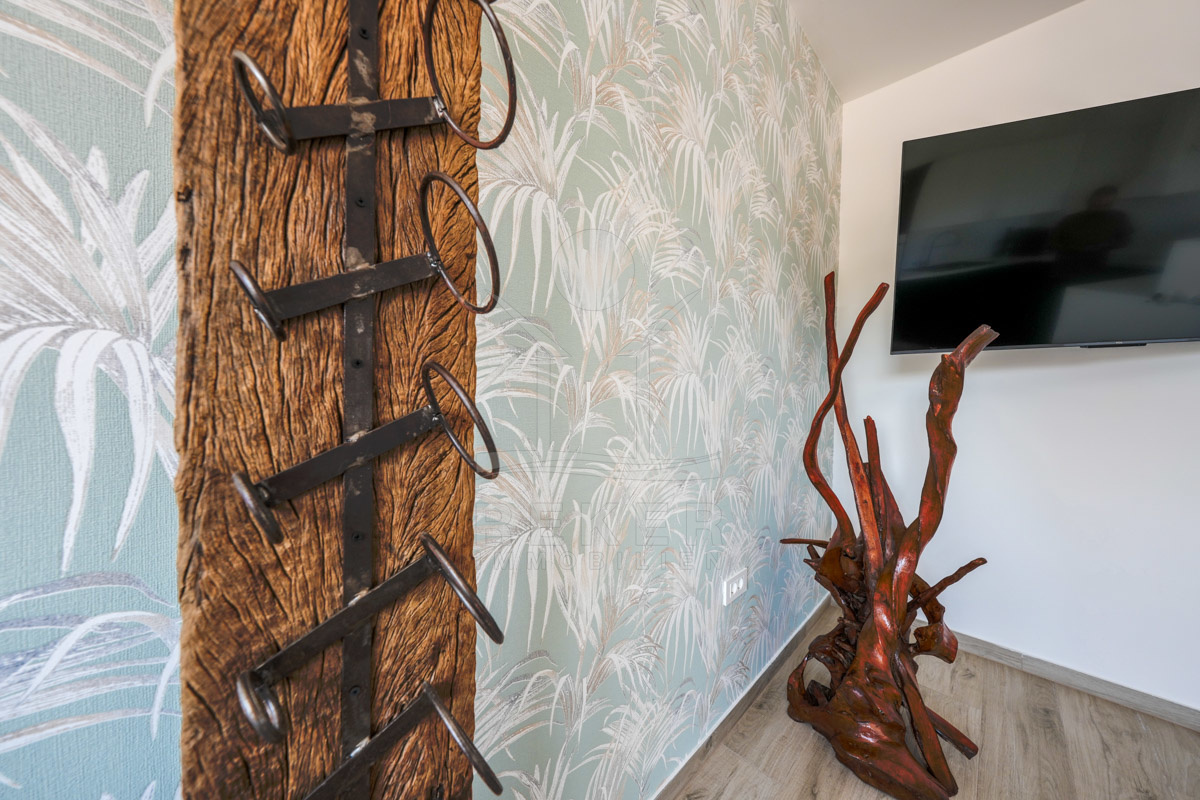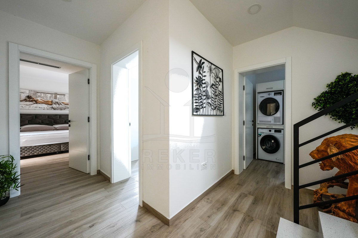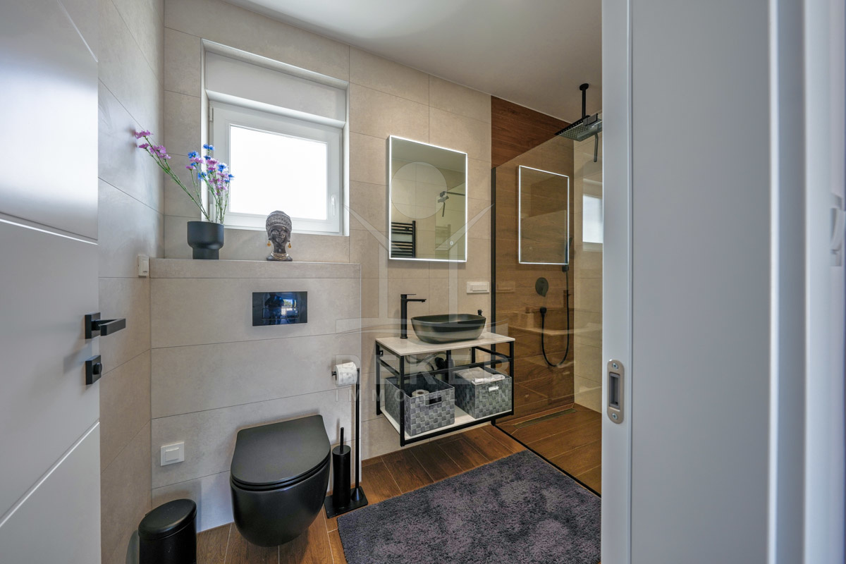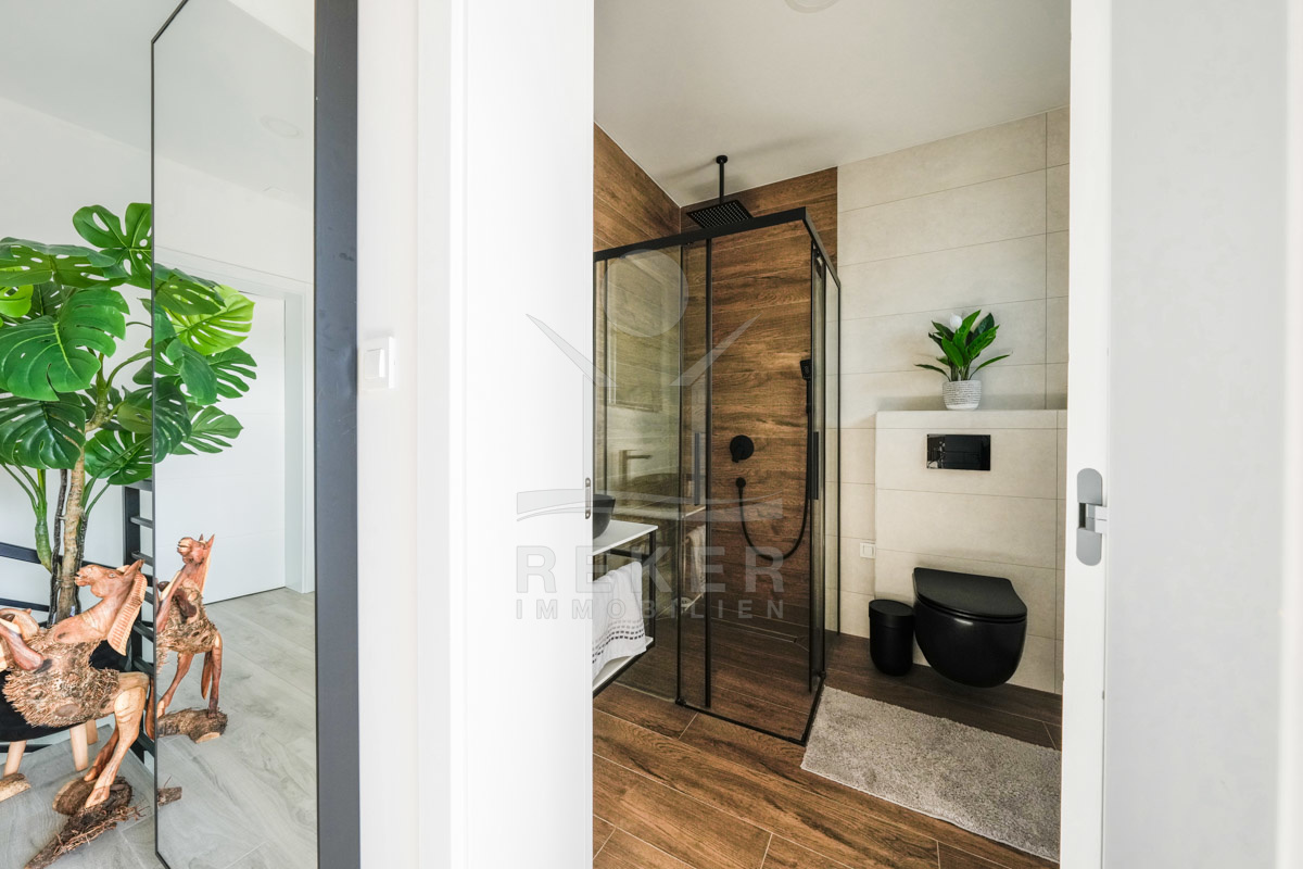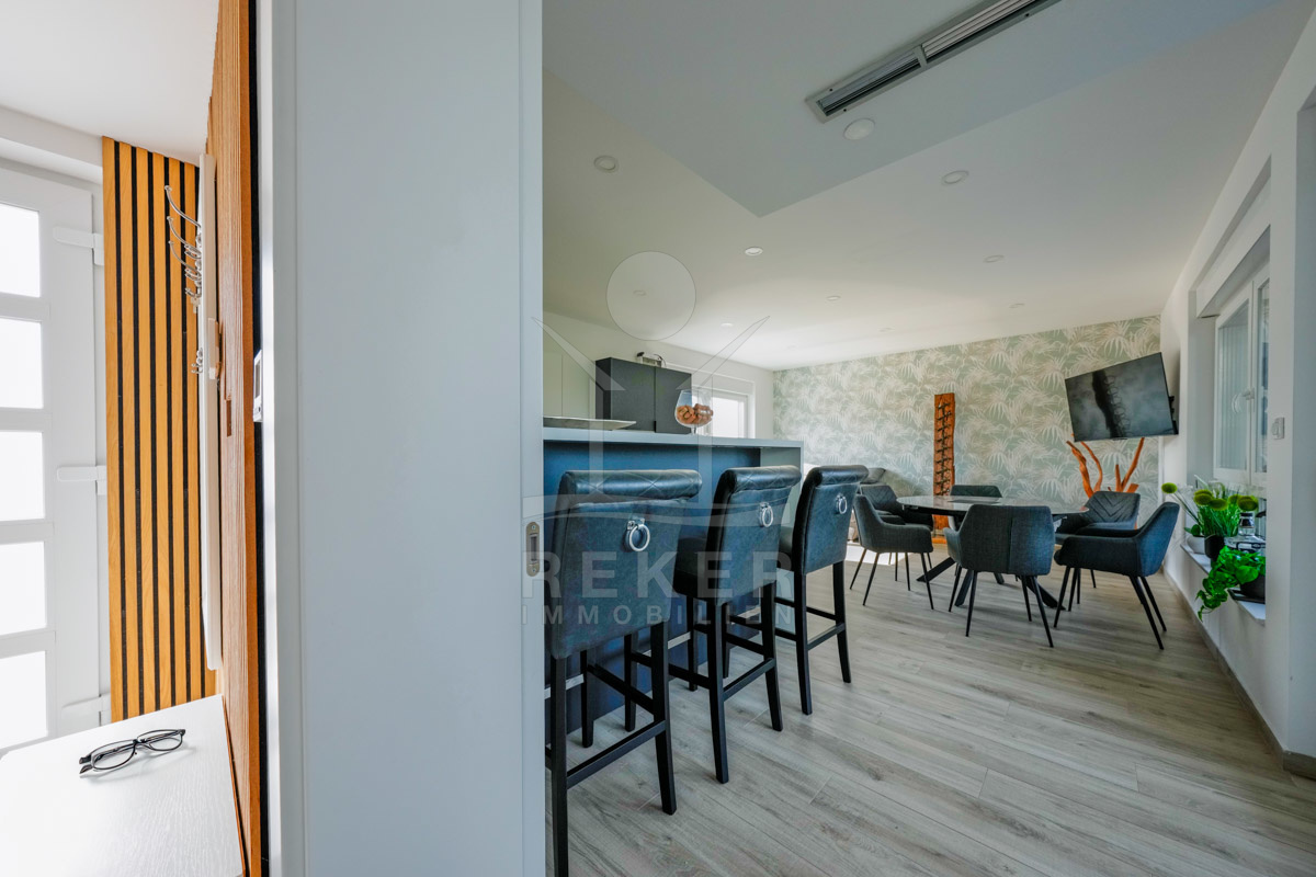 Das gesamte Haus ist hochwertig eingerichtet. Möbel und Design wirken abgestimmt, zeitlos und ruhig. Besonders markant: ausgewählte Kunstobjekte, die sich im ganzen Haus finden. Eine großformatige Wandinstallation, filigrane Metallkunst und eine auffällige Holzskulptur im Treppenbereich – das Zusammenspiel aus Architektur und Kunst verleiht dem Haus Persönlichkeit. Alles, was Sie auf den Bildern sehen, ist im Preis enthalten. Hier zieht man nicht einfach ein – man kommt an.