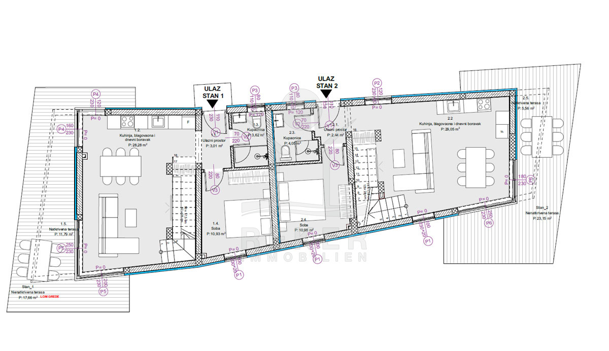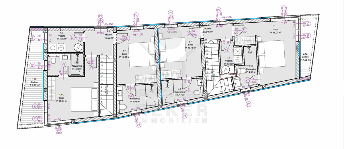 Das Anwesen wird auf einem Grundstück mit 136 m² gebaut und besteht aus 2 Etagen mit einer Gesamtfläche von 111 m². Mit den Bauarbeiten wird voraussichtlich im Oktober 2024 begonnen, mit einer geplanten Fertigstellung im Herbst 2025. Die Ausstattungsmerkmale umfassen eine Styropor-Fassade, PVC-Tischlerei, Moskitonetze, elektrische Jalousien, Aufzug, Klimaanlage, Fußbodenheizung in Badezimmern, Laminat, moderne Badezimmerkeramik, italienische Keramik, Internet/TV-Anschlüsse und Glaszäune auf den Balkonen. Parkplatz vorgesehen für 2 Stellplätze.