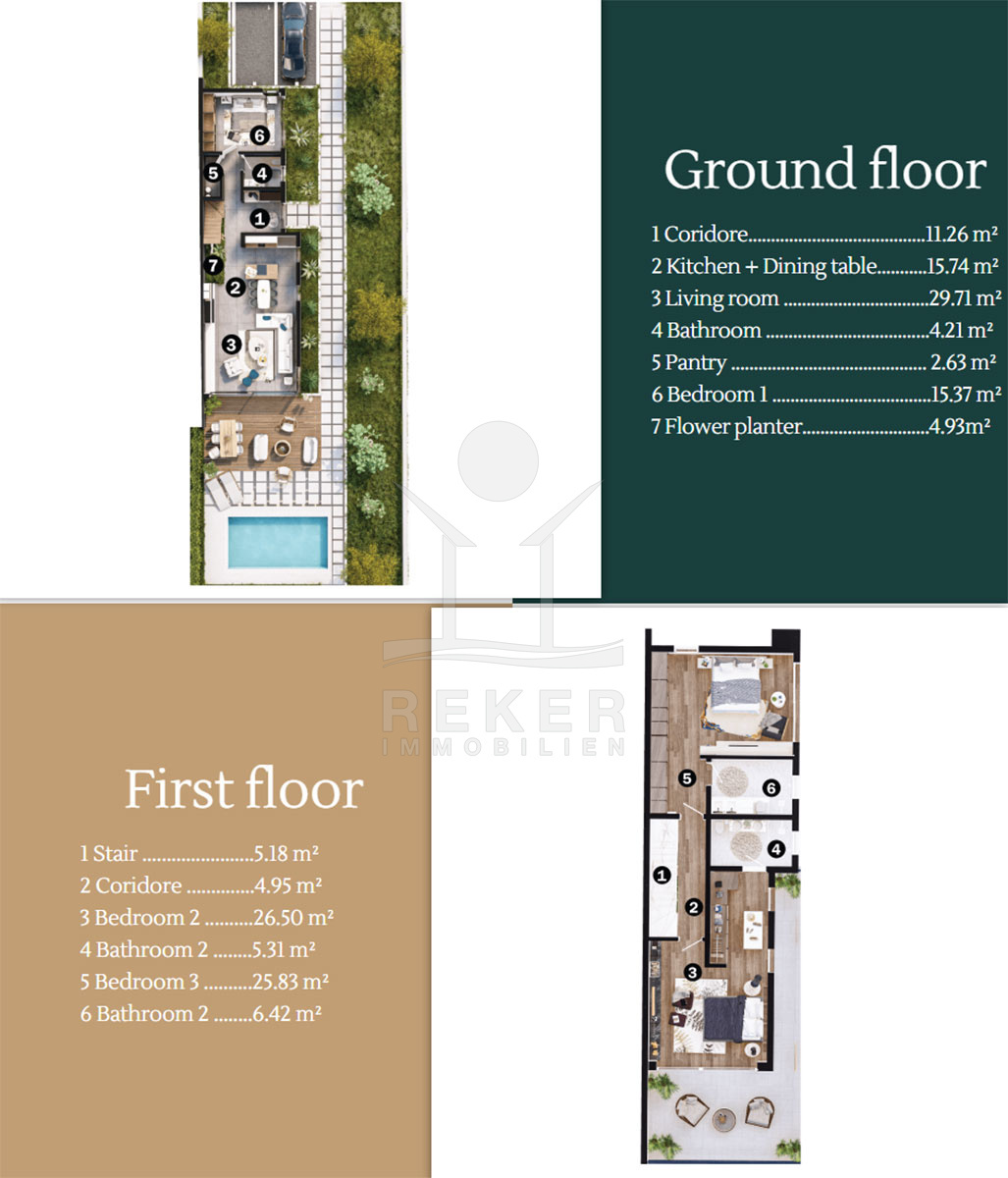 Die exklusive Doppelhaushälfte besticht durch ein Grundstück von 320 m², umgeben von einer geschmackvollen Mauer und natürlichen Materialien. Der grüne Garten bietet nicht nur Privatsphäre, sondern auch einen Ort der Ruhe und Erholung. Das moderne Gebäude aus dem Jahr 2024 erstreckt sich über 2 Etagen mit 250 m² Wohnfläche und verfügt über Fußbodenheizung, Klimaanlage und Wärmepumpe für höchsten Wohnkomfort.