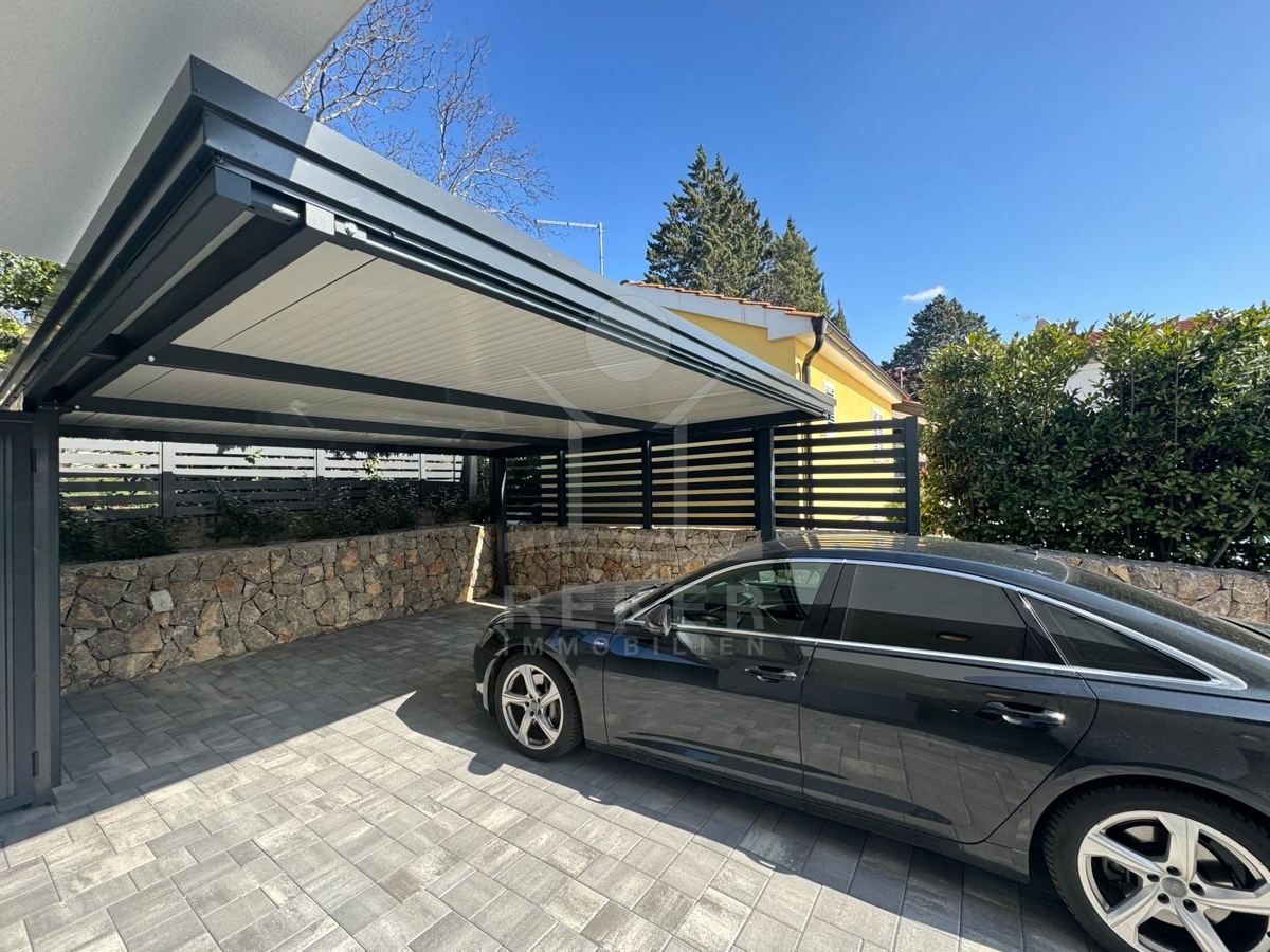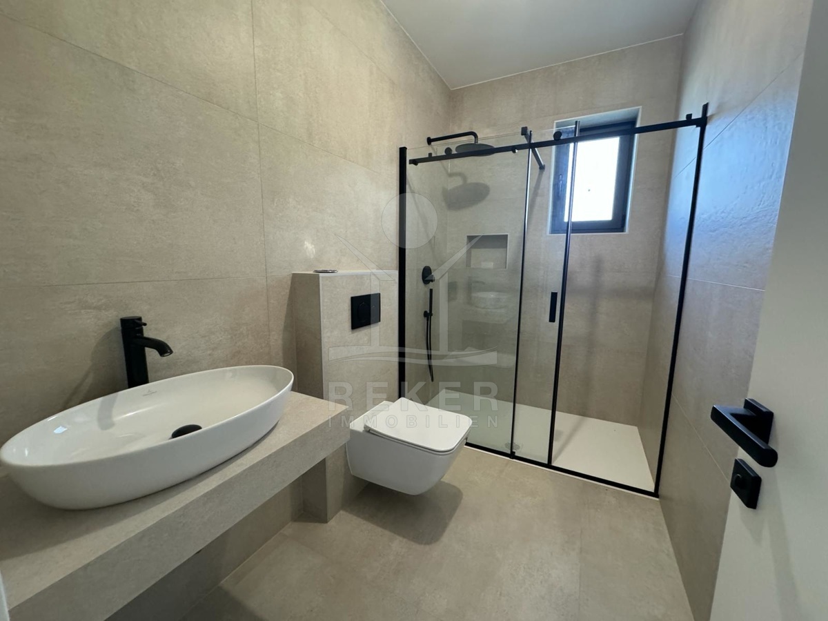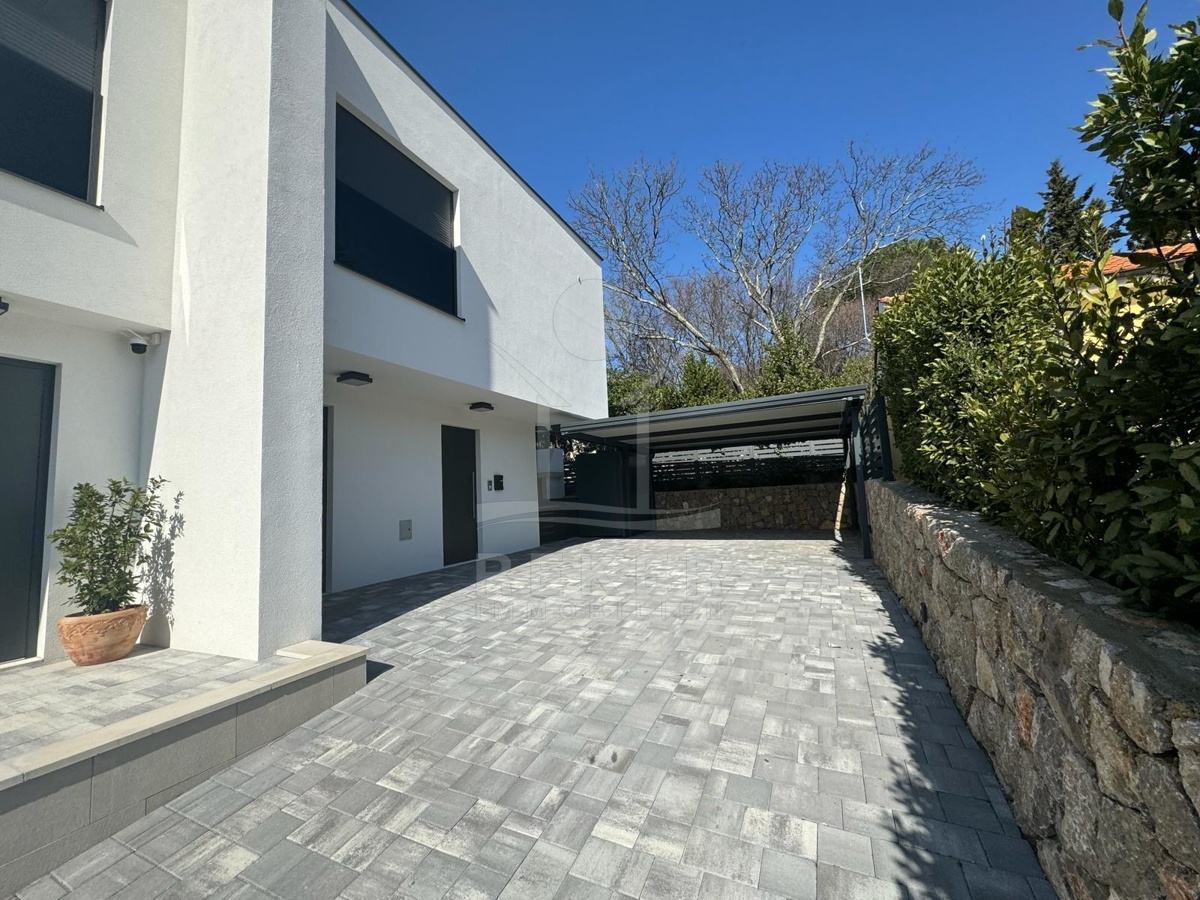 Das exklusive Anwesen besticht durch einen 120 m² großen Landschaftsgarten, der mediterran und geschmackvoll gestaltet ist. Umrandet von einer Steinmauer und einem Zaun, in leichter Hanglage gelegen, bietet das Grundstück einen atemberaubenden Panoramablick auf das Meer. Das 2023 erbaute Gebäude erstreckt sich über 2 Etagen und bietet 208 m² Wohnfläche für luxuriöses Wohnen. Die Villa besticht durch modernes Design und hochwertige Ausstattung, die jeden Tag zu einem Erlebnis machen. Mit zwei Parkplätzen ist dieses Traumhaus nicht nur eine Augenweide, sondern auch äußerst komfortabel für Ihre Bedürfnisse ausgestattet.