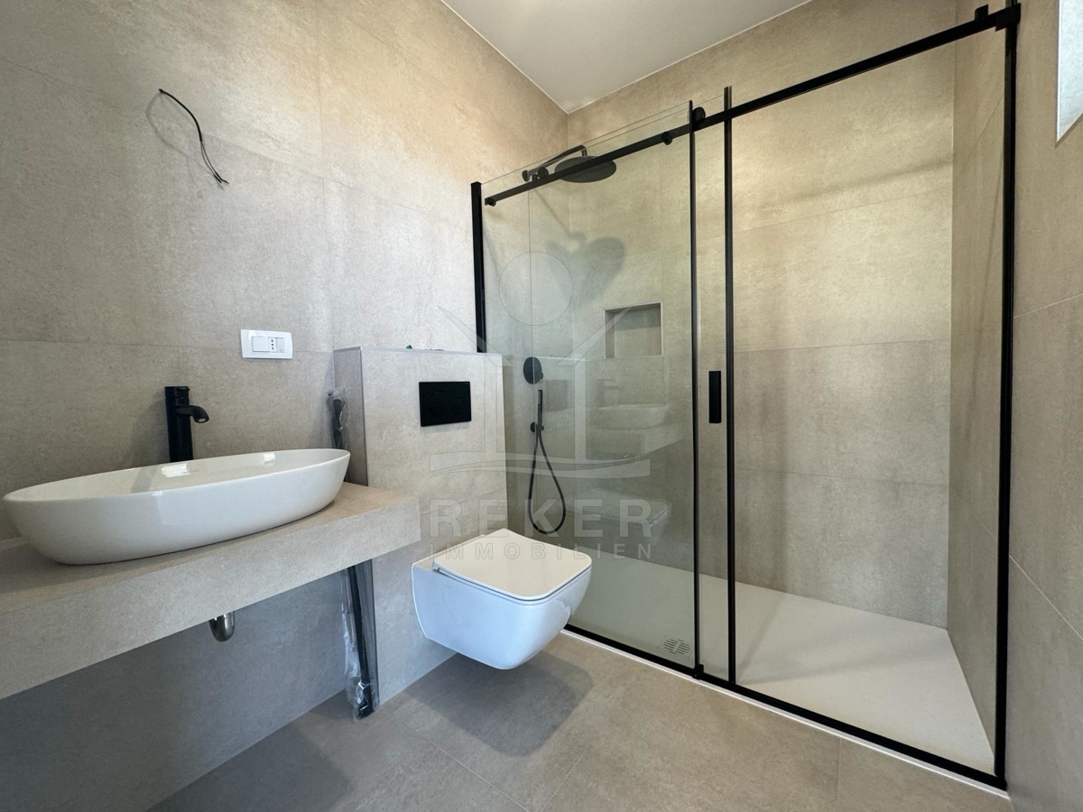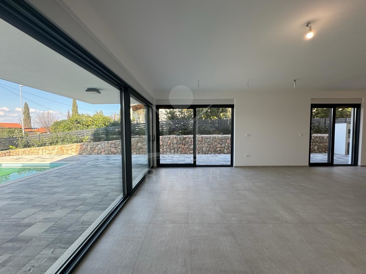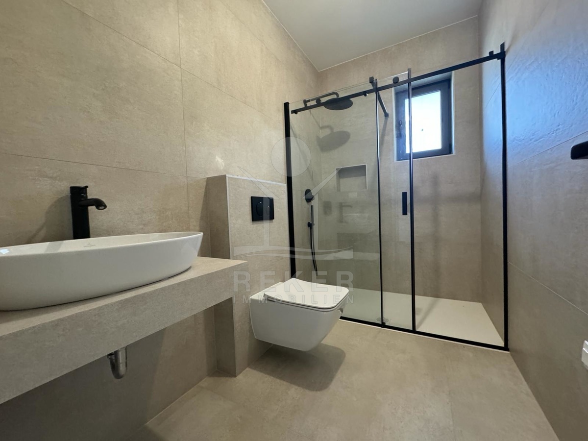 Das exklusive Anwesen besticht durch einen 120 m² großen Landschaftsgarten, der mediterran und geschmackvoll gestaltet ist. Umrandet von einer Steinmauer und einem Zaun, in leichter Hanglage gelegen, bietet das Grundstück einen atemberaubenden Panoramablick auf das Meer. Das 2023 erbaute Gebäude erstreckt sich über 2 Etagen und bietet 208 m² Wohnfläche für luxuriöses Wohnen. Die Villa besticht durch modernes Design und hochwertige Ausstattung, die jeden Tag zu einem Erlebnis machen. Mit zwei Parkplätzen ist dieses Traumhaus nicht nur eine Augenweide, sondern auch äußerst komfortabel für Ihre Bedürfnisse ausgestattet.