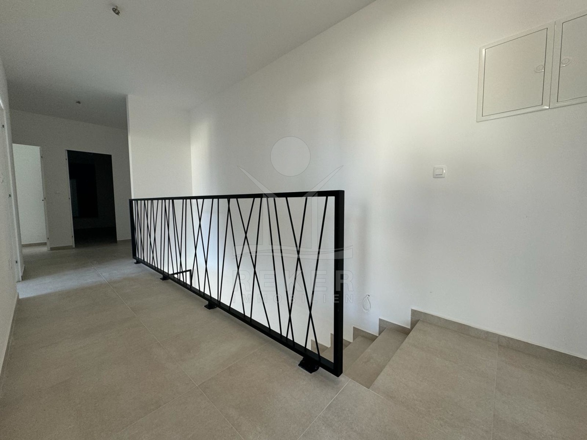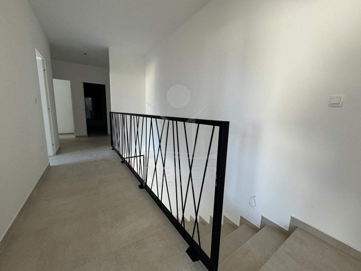 Die interne Treppe führt elegant nach oben zu diesem luxuriösen Wohnbereich. Im Obergeschoss bietet das Haus vier Schlafzimmer, drei Badezimmer, einen Flur, zwei begehbare Kleiderschränke und einen großzügigen Balkon (31 m²) von höchster Bauqualität.