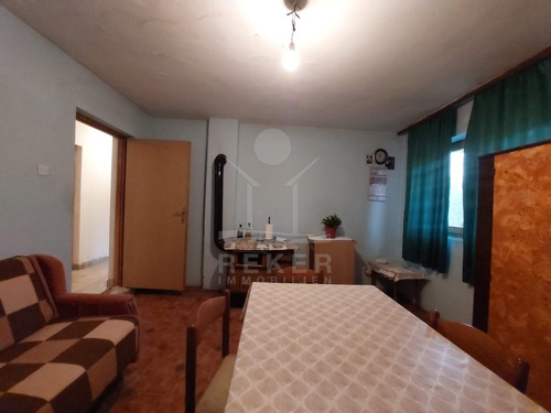 Der Grundriss des Hauses ist einfach, aber funktional. Und er lässt sich bei Bedarf anpassen. Im Erdgeschoss befinden sich zwei Schlafzimmer, eine einfache Küche, ein Wohnzimmer mit Holzofen und ein Bad mit Dusche und Fenster. Das Bad ist funktional, aber renovierungsbedürftig. Die Küche wurde zuletzt modernisiert. Die Fenster haben Holzrahmen mit Öko-Doppelverglasung, die Türen bestehen aus Holz mit Einfachverglasung. Der Bodenbelag wechselt zwischen Fliesen, Laminat und Beton – je nach Raum. Das Mobiliar ist schlicht, aber im Preis inbegriffen. Beheizt wird aktuell mit Holzofen. Stromanschluss ist vorhanden, Wasser kommt aus der natürlichen Dorfquelle. Wer möchte, kann auch Stadtwasser anschließen. Das Haus ist teilrenoviert (Dach, Fenster, Strom, Innenwände, neue Betonträger). Wer noch mehr Raum möchte: das Dachgeschoss ist über eine Betontreppe erreichbar und kann ausgebaut werden – auch hier wartet ein kleiner Balkon mit Aussicht. Unter dem Haus befindet sich ein Keller mit Außenzugang.