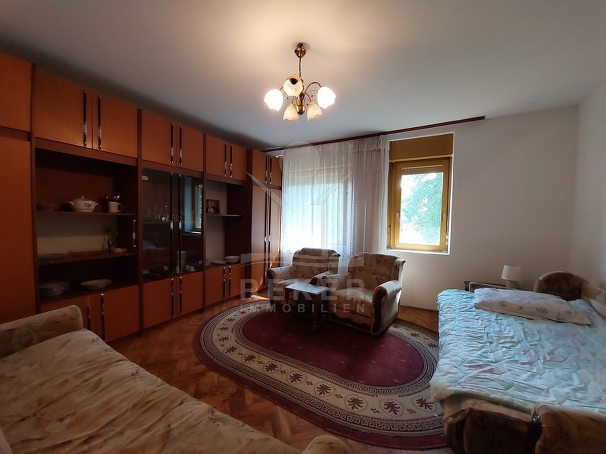 Ein kleines Dorf bei Vojnić. Viel Ruhe, weite Felder, wenig Verkehr – aber trotzdem gut erreichbar. Die asphaltierte Hauptstraße bringt Sie direkt zum Haus. Nur 2,8 km bis zur Stadt Vojnić, wo es alles für den Alltag gibt. Karlovac ist rund 20 Minuten entfernt, falls Sie mehr Auswahl brauchen. Die Lage ist ideal für Menschen, die Abstand vom Stadttrubel suchen – aber nicht von der Welt.