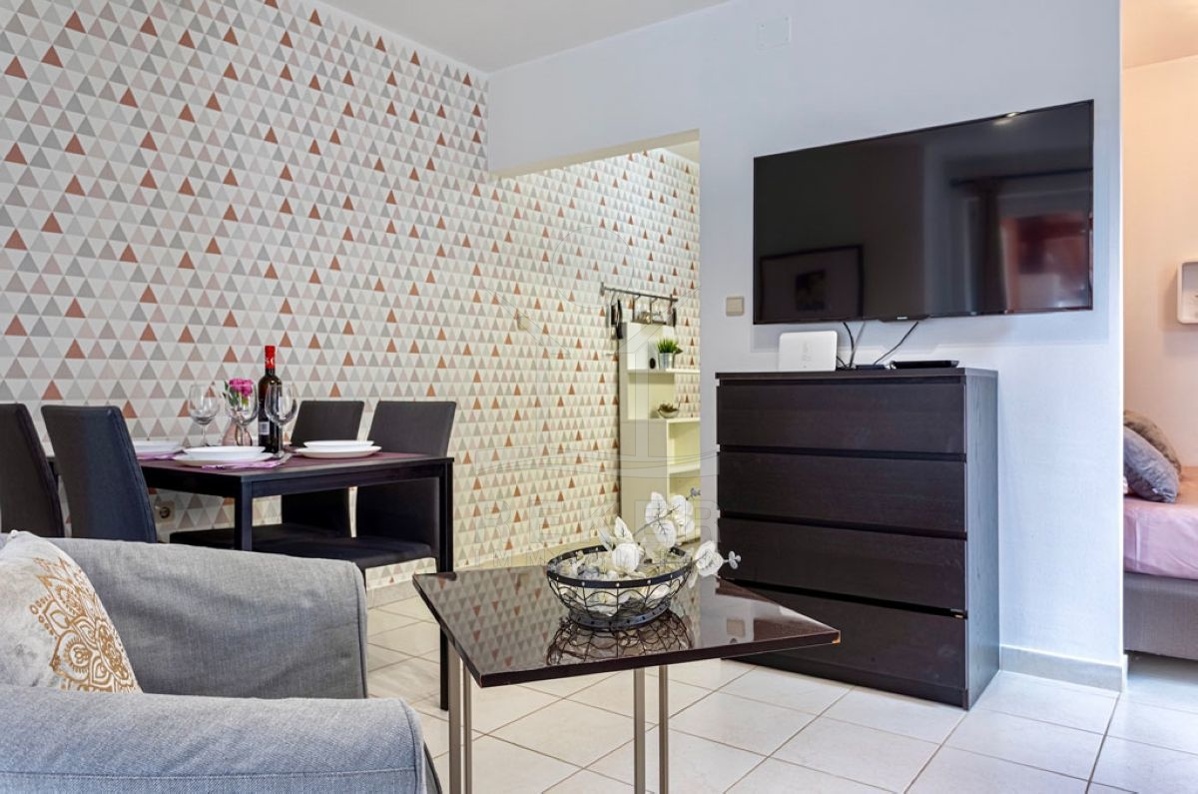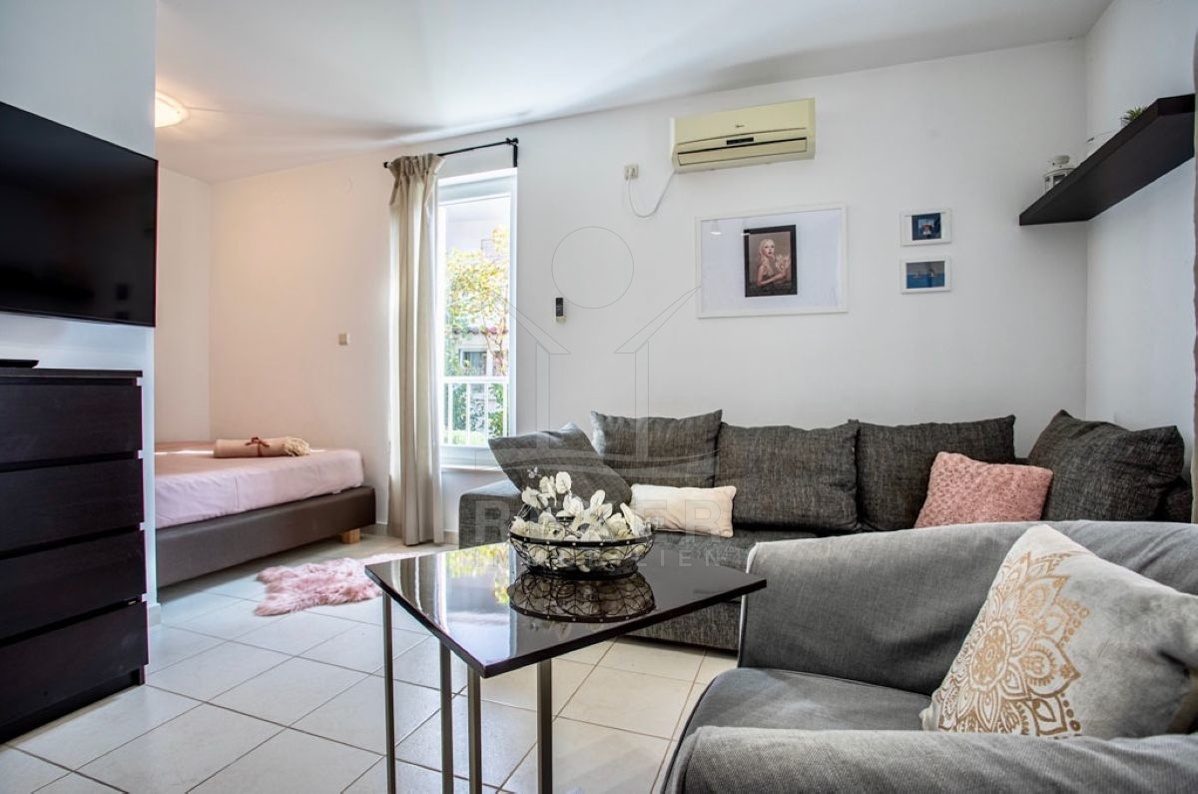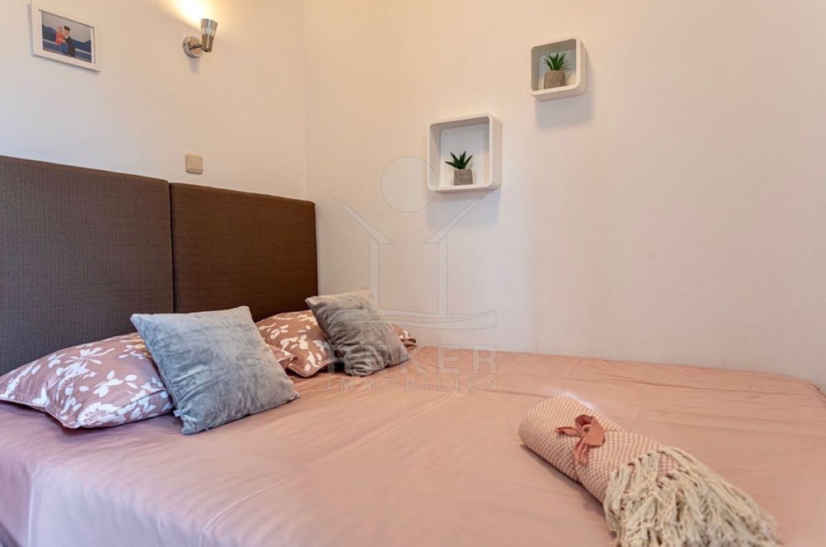 Beide Apartments sind mit Klimaanlage ausgestattet und voll möbliert. Wohnung Nr. 1 bietet ein geräumiges Wohnzimmer mit Essbereich, eine Küche, ein Badezimmer mit Duschkabine und ein Schlafzimmer. Der Zugang zur großzügigen Terrasse mit überdachtem Bereich, Sitzlounge und Grillmöglichkeiten lädt dazu ein, Zeit im Freien zu genießen.