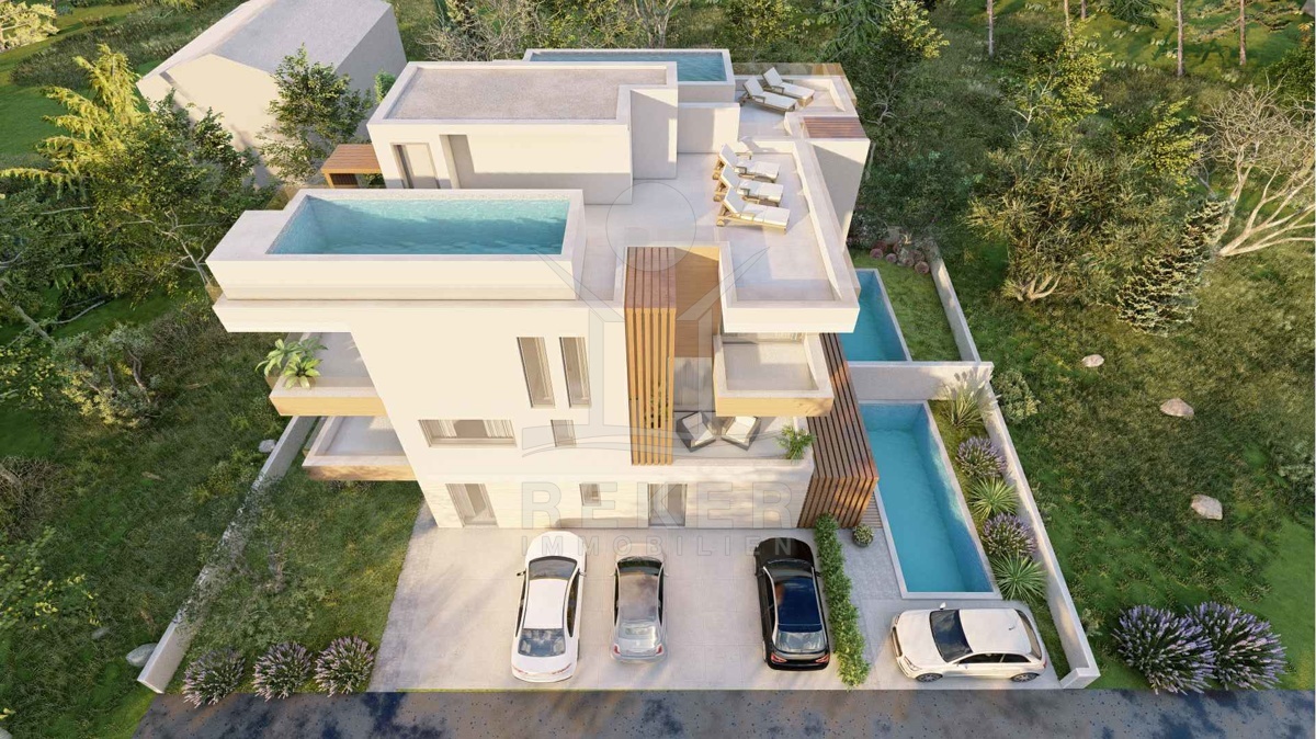 Das Haus besteht aus vier hochwertigen Wohnungen. Zwei davon im Erdgeschoss, jeweils mit eigenem Pool. Die anderen beiden sind Maisonette-Wohnungen über zwei Etagen mit privater Dachterrasse – ideal für alle, die Platz und Weitblick lieben. Der Einzug ist ab Mitte Dezember 2025 möglich. Der Bau wird ausschließlich mit Qualitätsmaterialien bekannter Hersteller umgesetzt – sichtbar, spürbar, wertvoll. Vor dem Gebäude: private Stellplätze für jedes Apartment. Praktisch und bequem.