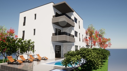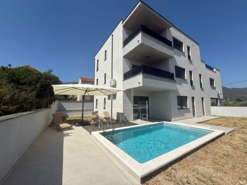 NEUBAU IN KAŠTELA: ERDGESCHOSS-WOHNUNG MIT POOL UND MEERBLICK