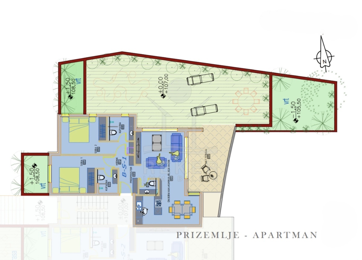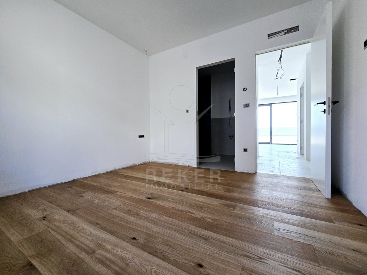 Willkommen in einer Wohnung, die auf den ersten Blick Ruhe ausstrahlt. Zwei Schlafzimmer – jedes mit eigenem Bad. Ein heller Wohnbereich mit großen Glasfronten. Und draußen: ein Garten, wie man ihn selten findet. Über 100 m² Fläche, direkt vor Ihrer Terrasse. Sonne, Aussicht, Privatsphäre – alles da. Der offene Wohnraum verbindet Kochen, Essen und Wohnen. Die Terrasse davor bietet Platz für Tisch, Liegen oder Gäste. Und der Garten – ganz Ihrer. Hier beginnt der Tag mit Vogelstimmen und Meerblick.