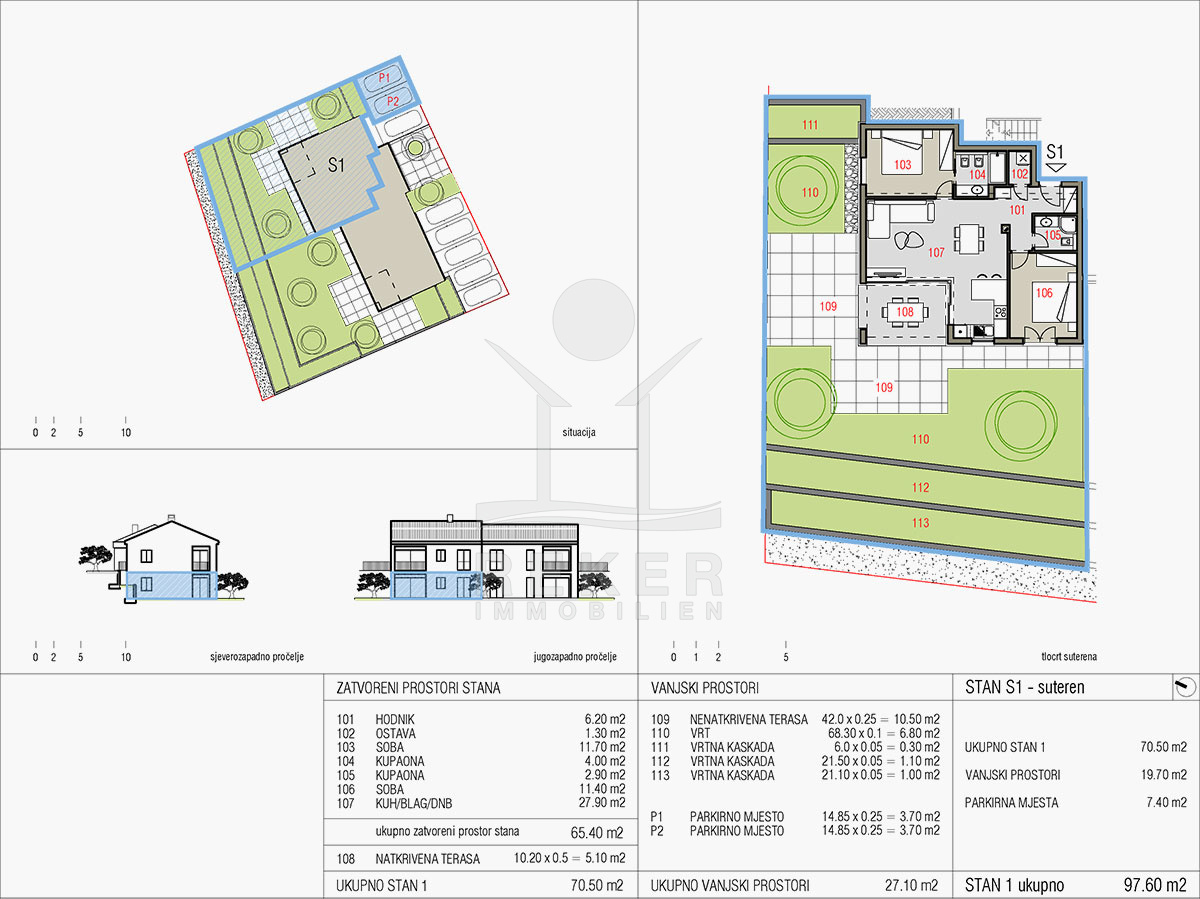 In diesem modernen Neubau entsteht eine Erdgeschosswohnung mit einer Größe von 98 m² und einer Grundstücksfläche von ca. 160 m². Die Wohnung befindet sich in einem Gebäude mit insgesamt vier Einheiten und wird voraussichtlich im Mai 2024 fertiggestellt. Bei der Konstruktion und Ausstattung des Gebäudes wird auf hohe Qualität gesetzt, mit ALU-Zimmerei, elektrischen Jalousien und effizienten Luft-Wärmepumpe. Zudem wird das Apartment mit erstklassiger Keramik und Parkettböden ausgestattet.