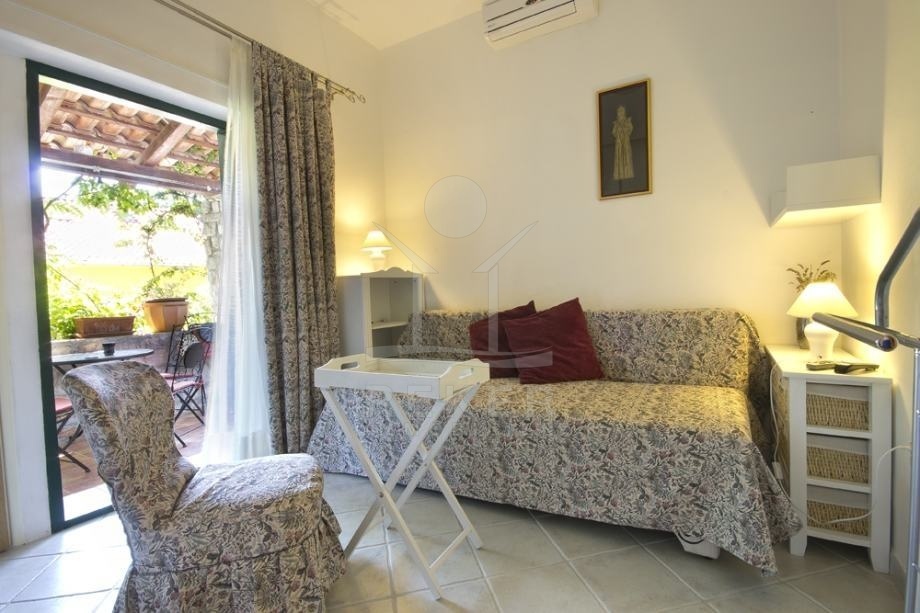 Ein zauberhafter Kamin schmückt den attraktiv möblierten Wohnbereich