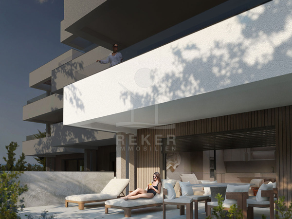 Das Gebäude ist Teil einer edlen, geschlossenen Wohnanlage mit fünf Häusern. Sie erinnert an ein kleines Dorf. Zwei separate Treppenhäuser strukturieren die neun Wohnungen klar und sorgen für angenehme Privatsphäre. Jede Einheit verfügt über zwei Außenstellplätze und einen eigenen Abstellraum, praktisch und komfortabel. Gepflegte Grünflächen rahmen das Ensemble ein und unterstreichen den ruhigen, hochwertigen Charakter. Die Fertigstellung ist für das Frühjahr 2026 vorgesehen.