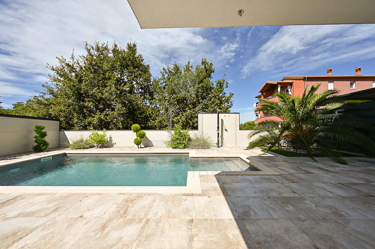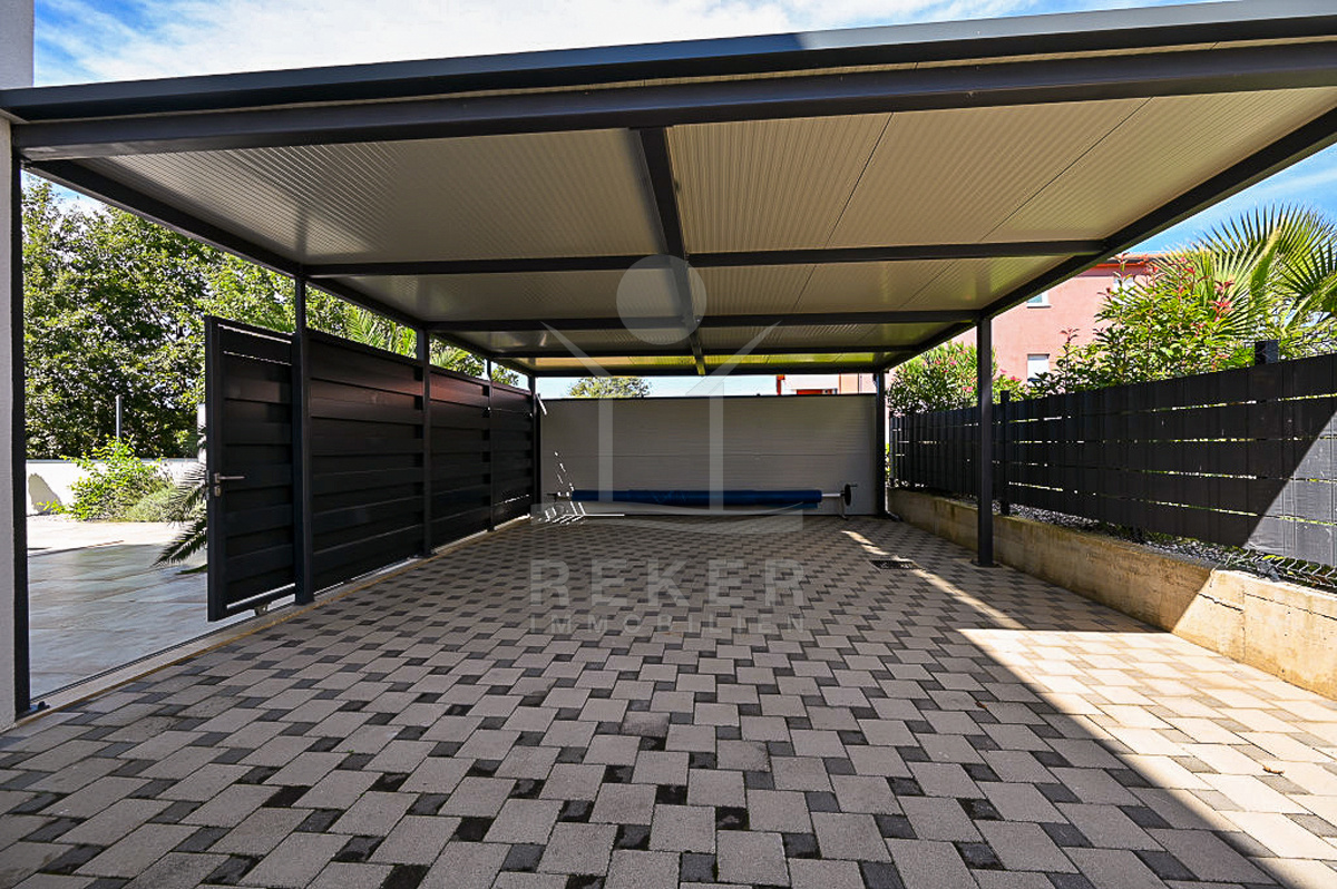 Die Wohnung befindet sich in einem ruhigen Stadtteil von Novigrad. Das Gebäude wurde 2022 errichtet und zählt insgesamt drei Etagen. Ihre Wohnung liegt im Erdgeschoss und ist durch die süd- und westliche Ausrichtung den ganzen Tag über lichtdurchflutet. Zum Eigentum gehören vier überdachte Parkplätze sowie ein 24 m² großer Abstellraum, ein seltener Vorteil für eine Wohnung dieser Größe. Videoüberwachung und Sicherheitstüren sorgen zusätzlich für ein gutes Gefühl.