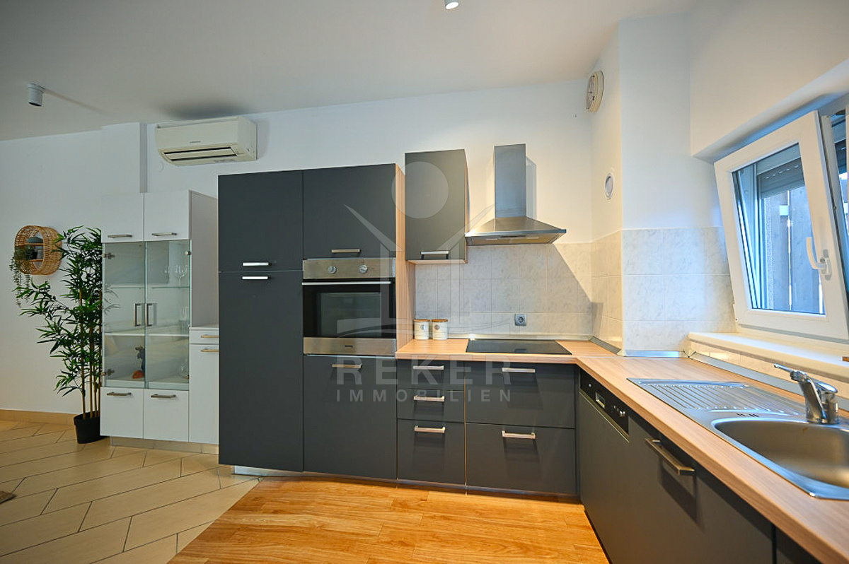 Innen wird’s gemütlich: offener Wohn- und Essbereich mit moderner Küche, zwei Schlafzimmer, Bad mit WC. Außerdem: ein Abstellraum, ein Keller und eine kleine Eingangshalle für Jacken, Schuhe und alles, was man sonst so braucht. Die Möbel stehen schon drin – einfach Koffer auspacken und loswohnen. Klimaanlage und Kamin? Gibt’s auch. Wenn Sie kurze Wege mögen, Wert auf eine clevere Raumaufteilung legen und einen Mix aus Komfort und Ruhe suchen, dann passt diese Wohnung zu Ihnen. Ob für die Familie oder zu zweit – hier lässt sich gut leben.