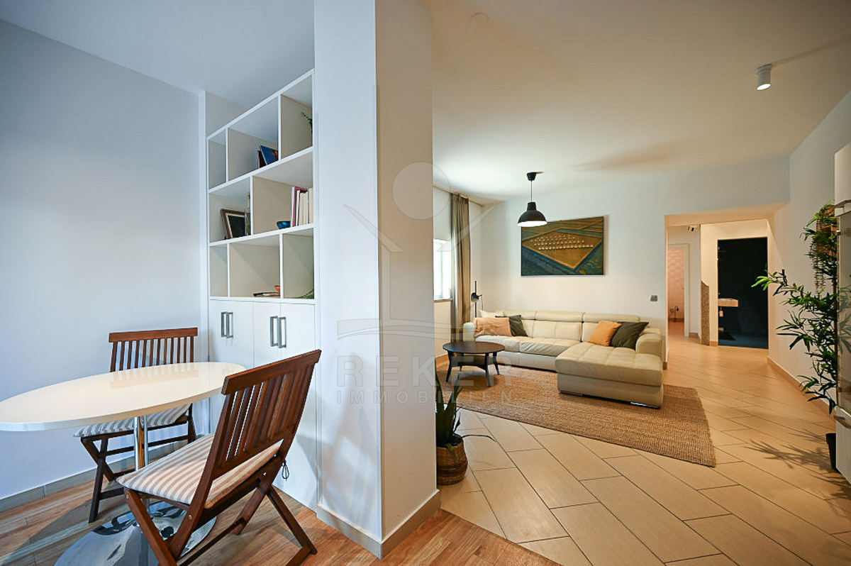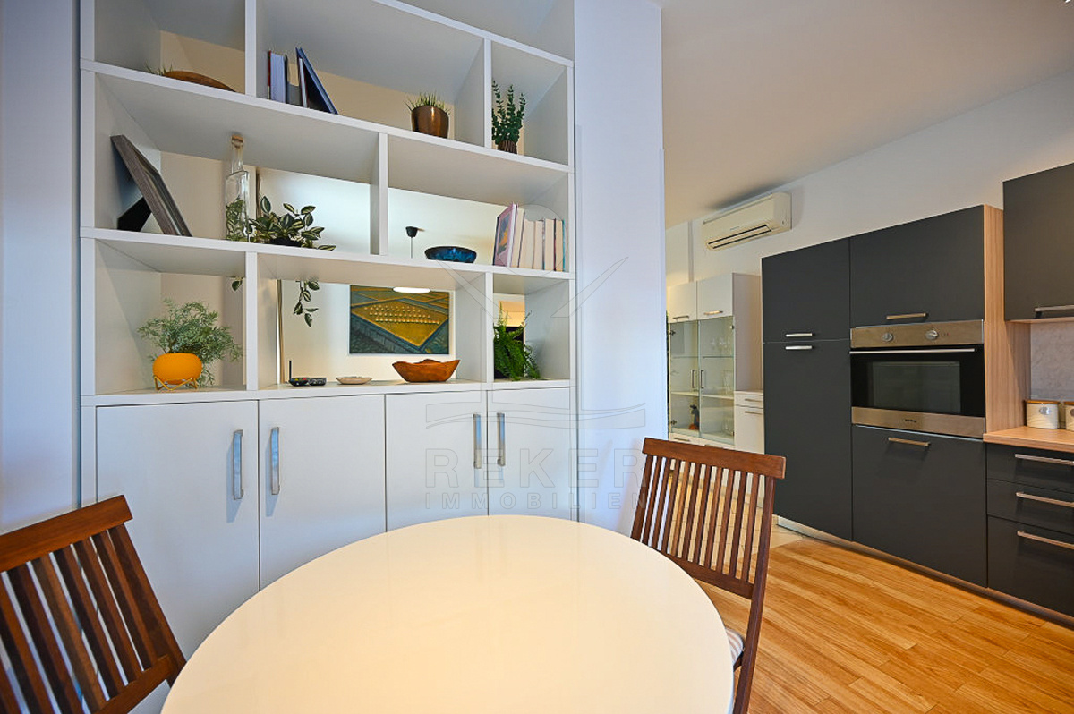 Novigrad zählt zu den beliebtesten Orten an der Küste. Nur rund 150 Meter vom Meer und dem lebendigen Stadtzentrum entfernt wartet diese charmante Erdgeschosswohnung auf neue Bewohner. Alles Wichtige für den Alltag erreichen Sie bequem zu Fuß: Bank, Apotheke, Kindergarten und Yachthafen. Auch das Auto hat seinen Platz, denn ein überdachter Stellplatz gehört zur Ausstattung.