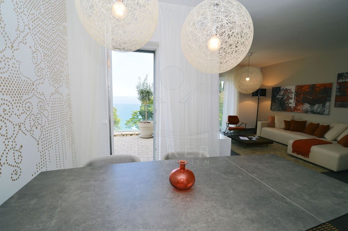 Nur ein paar Kilometer von Opatija entfernt liegt diese moderne Villa … direkt an der Küste, nur 50 Meter vom Meer. Dank ihrer Lage am Hang haben Sie freien Blick auf die Adria, ganz ohne störende Bebauung davor. Und weil rundherum dichter Baumbestand ist und der nächste Nachbar etwa 100 Meter entfernt wohnt, bleibt es ruhig. Richtig ruhig. Klingt das nach Rückzug? Ist es auch.