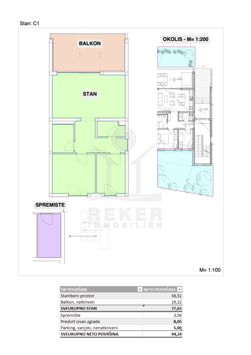 Die luxuriöse Neubauwohnung ist Teil eines modernen Gebäudes mit insgesamt 12 Wohnungen, das derzeit errichtet wird. Mit einer großzügigen Wohnfläche von 78 m², hochwertiger Bauweise und einer westlichen Ausrichtung profitiert die Wohnung von herrlichem Licht und einer warmen Atmosphäre. Die Gartenfläche von 8 m² bietet zusätzlichen Raum im Freien, während die geplante Klimaanlage den Wohnkomfort zu jeder Jahreszeit erhöht. Zudem steht den Bewohnern ein Parkplatz von 25 m² (Parkplatz 25 x Koeffizient 0,2 = 5 m²) zur Verfügung, ideal für zwei Stellplätze, sowie ein praktischer Lagerraum von 3,65 m² für zusätzlichen Stauraum.