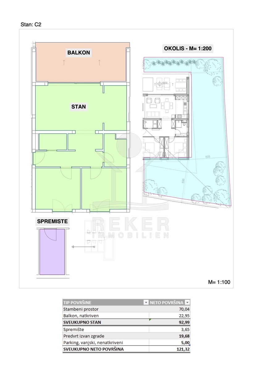 Die luxuriöse Erdgeschosswohnung ist Teil eines eleganten Neubauprojekts, das im Jahr 2024 begonnen wurde und insgesamt 12 Wohnungen auf 2 Etagen umfasst. Mit einer großzügigen Wohnfläche von 93 m² und einer Westausrichtung bietet die Wohnung ein helles und einladendes Ambiente. Höchste Qualität in der Bauweise, einschließlich einer vorgesehenen Klimaanlage, sorgt für einen modernen Wohnkomfort. Zudem steht den Bewohnern ein Parkplatz von 25 m² (Parkplatz 25 x Koeffizient 0,2 = 5 m²)zur Verfügung, der Platz für 2 Stellplätze bietet, sowie ein praktischer Lagerraum von 3,65 m² zur Verfügung. Die Wohnung verfügt über eine charmante Gartenfläche von 20 m², die ideal für entspannende Stunden im Freien ist. Wünschen.