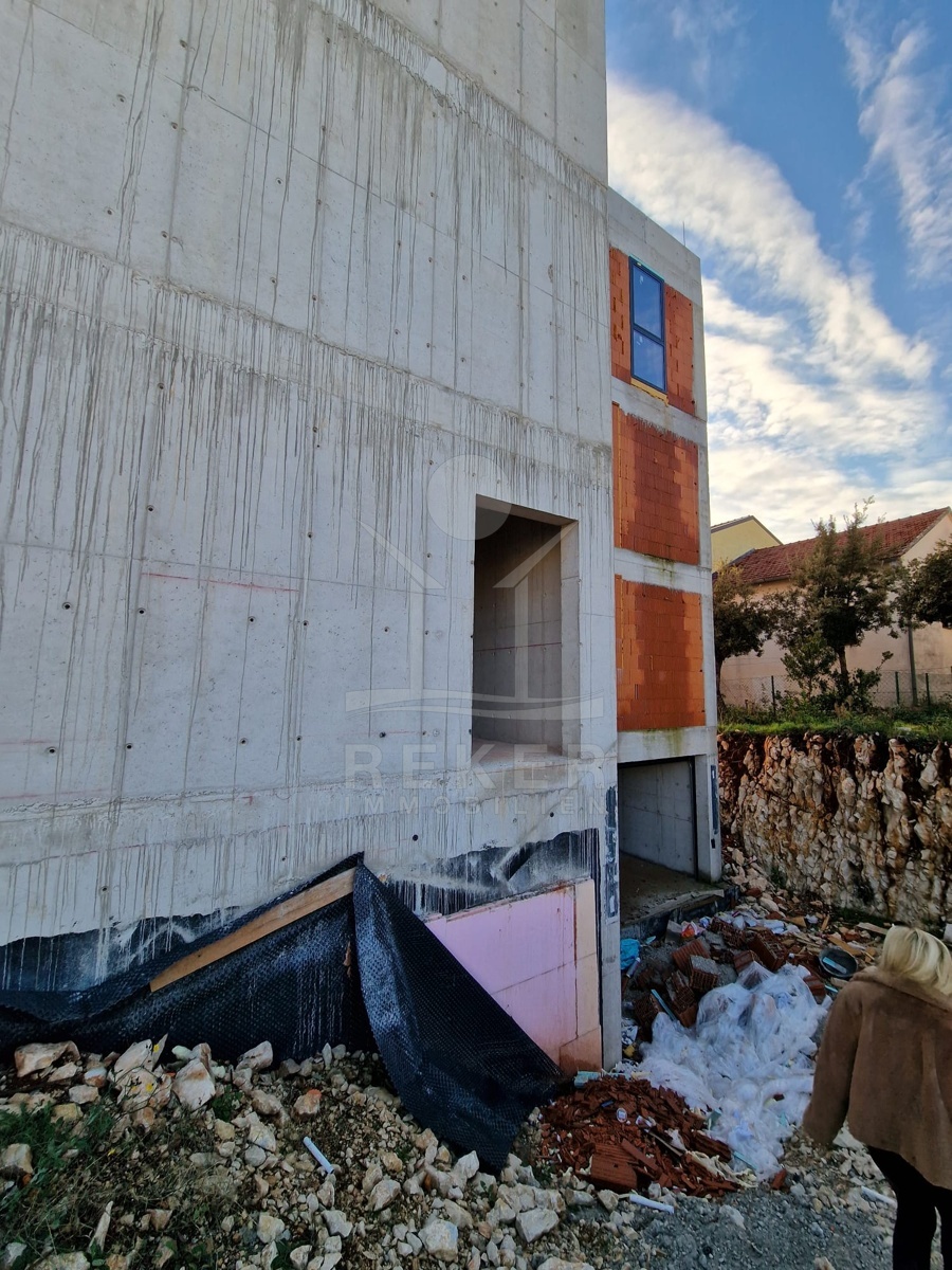 Petrčane zählt zu den begehrten Küstenorten in Norddalmatien. Nur rund 100 Meter trennen dieses Haus vom Meer. Es entsteht in dritter Reihe. Die beiden Grundstücke davor sind derzeit unbebaut. Dadurch bleibt die Meerseite offen und frei. Die Umgebung zeigt sich ruhig und grün. Wenn Sie die Nähe zum Meer schätzen und zugleich eine entspannte Atmosphäre suchen, finden Sie hier eine stimmige Kombination.