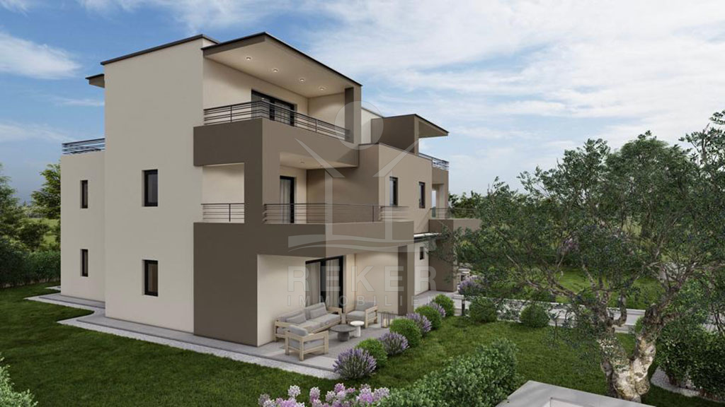 WOHNEN IM EINKLANG MIT DER NATUR: MODERNE NEUBAU ERDGESCHOSSWOHNUNG IN DER NÄHE DES MEERES IN POREČ