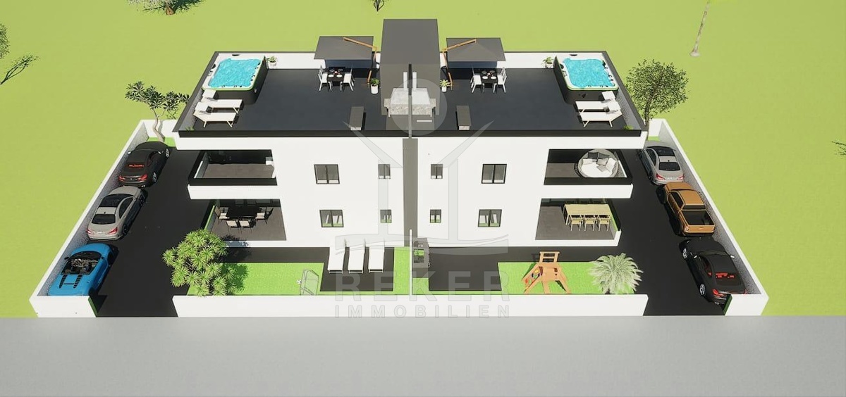 EXKLUSIVE NEUBAU ERDGESCHOSSWOHNUNG MIT ATEMBERAUBENDEM MEERBLICK UND GARTENANTEIL IN PRIVLAKA