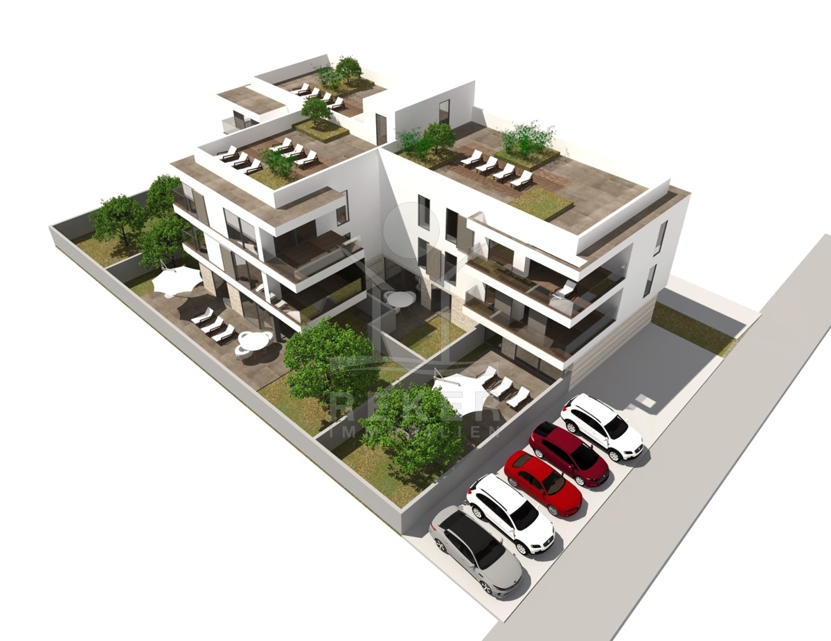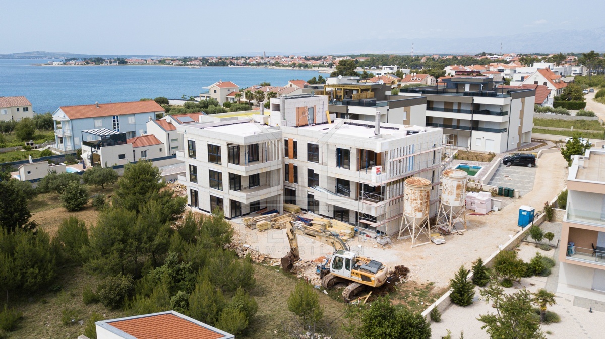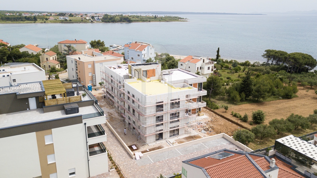 Der moderne Neubau befindet sich in Privlaka, nur 60 Meter vom Meer entfernt in einer ruhigen Umgebung mit viel Grün. Die 2. Meeresreihe gewährt einen ungehinderten Blick auf die malerische Meeresküste. Ein bequemer Weg führt von der Wohnung direkt zum Meer, sodass Sie die Küste jederzeit mühelos erreichen können.