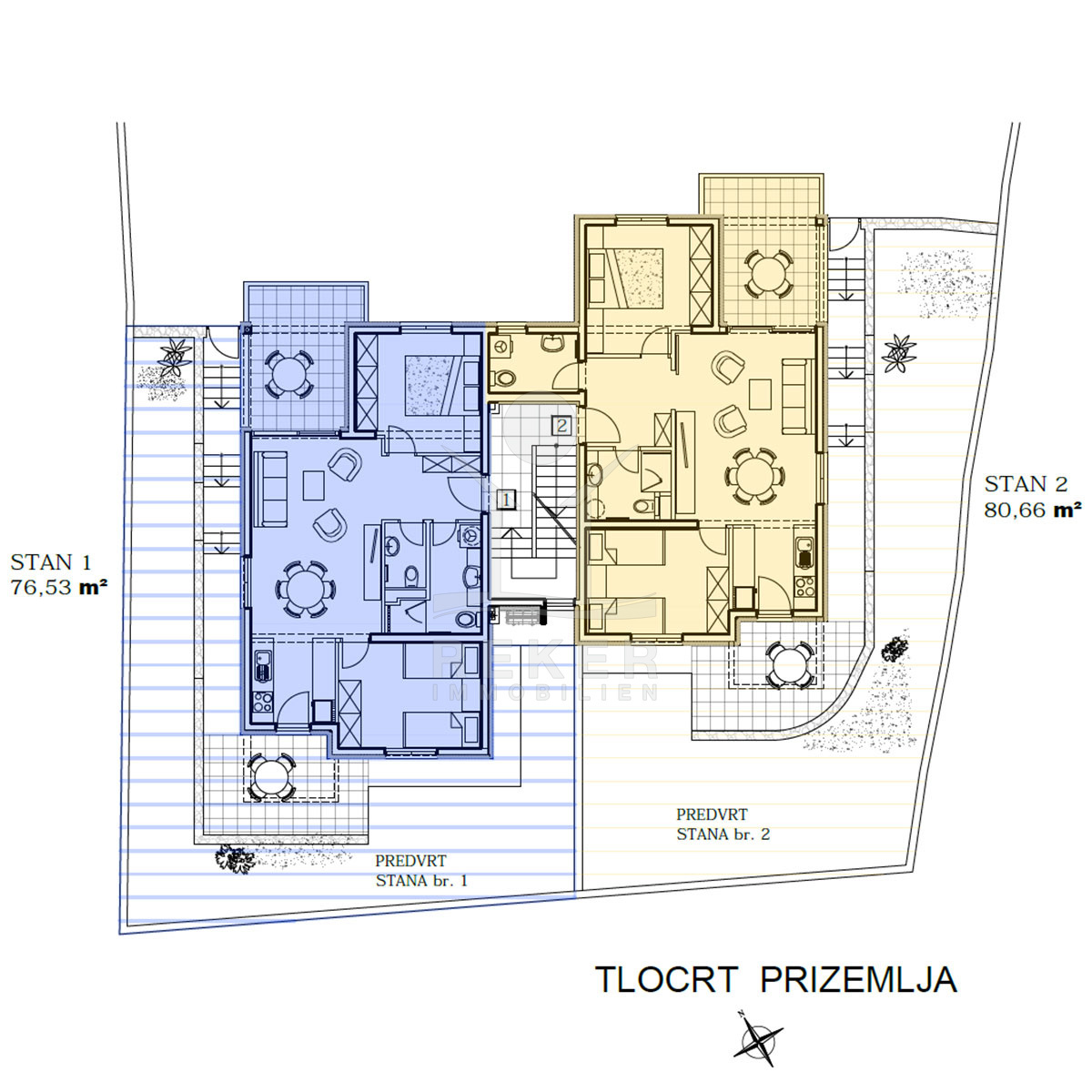 Die Wohnung im Erdgeschoss befindet sich in einem Gebäude mit insgesamt 4 Wohneinheiten auf zwei Etagen. Mit einer Gesamtfläche von 95,19 m² bietet sie einen beeindruckenden Gartenbereich von 98 m². Die hochwertige Ausstattung garantiert Komfort und Sicherheit dank Fassadendämmung, Dreischichtparkett, Edelkeramik und PVC-Zimmerei mit 3-fach-Verglasung. Die Fußbodenheizung, das „Multi-Split“-System sowie Einbruch- und Brandschutztüren runden das exklusive Wohngefühl ab. Die geplante Fertigstellung im Mai 2025 hinterlässt Vorfreude auf ein modernes Zuhause mit einer Garage von 24 m² für bequemes Parken.