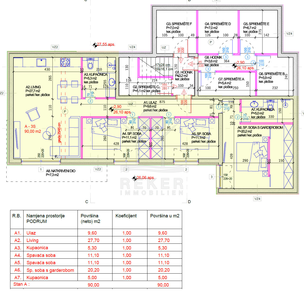 Die stilvolle Neubauwohnung im Erdgeschoss (Tiefpaterre) befindet sich in einem modernen Komplex mit insgesamt 6 Einheiten, die voraussichtlich 2025 fertiggestellt werden. Das Besondere an dieser Wohnung ist der großzügige 140 m² große Garten, der ideal für Familien oder Gartenliebhaber ist. Die Wohnung wird mit fortschrittlicher Haustechnik ausgestattet, darunter eine Klimaanlage für Heizung und Kühlung sowie eine Fußbodenheizung im Bad und Wohnzimmer. Als zusätzliche Sicherheitsmaßnahme wird eine Sicherheitstür installiert, um das Wohlbefinden der Bewohner zu gewährleisten. Die Erdgeschosswohnung bietet nicht nur einen eigenen Abstellraum (5,40 m²), sondern auch gleich 2 Stellplätze für Ihre Fahrzeuge, die im Kaufpreis inbegriffen sind.