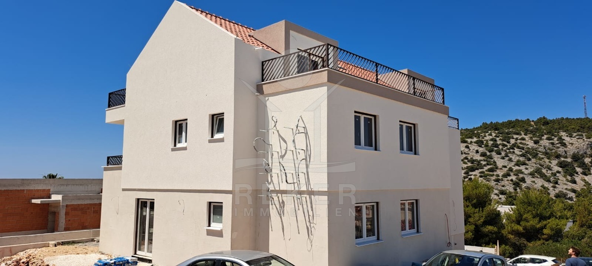 Der Neubau befindet sich in einer idyllischen Lage in der Nähe von Rogoznica, nur 120 Meter vom Meer entfernt, das wunderbar fußläufig erreichbar ist. Diese hochwertige Immobilie wird in einer ruhigen Umgebung errichtet, fernab vom hochfrequentierten Trubel und bietet Ihnen die perfekte Möglichkeit, die Schönheit der dalmatinischen Küste zu genießen. Der romantische Ort Rogoznica liegt malerisch zwischen Primosten und Trogir und hat sich von einem einstigen Fischerdorf zu einem ruhigen Urlaubsparadies für Badeurlauber und Nautiker entwickelt. Obwohl die Wohnung nur etwa 12-15 Autominuten vom Ortszentrum entfernt ist, profitieren Sie hier von der Stille der Natur, umgeben von traumhaften Stränden und einsamen Buchten entlang der 50 km langen Küste. Familien mit Kindern finden am hervorragenden Sepurina Strand ideale Bedingungen zum Baden und Entspannen. Entdecken Sie die typischen alten dalmatinischen Steinhäuser entlang der Uferpromenade und genießen Sie den Blick auf die Marina Frapa, eine der modernsten Marinas Kroatiens. Für Abenteuerlustige gibt es in der Umgebung spannende Möglichkeiten, wie die bis zu 24 Meter hohen Klippen rund um den "Auge des Drachen" – dem Zmajevo oko. Hier wird Ihnen die Möglichkeit geboten, die ruhige Umgebung und die erholsame Atmosphäre in vollen Zügen zu genießen.