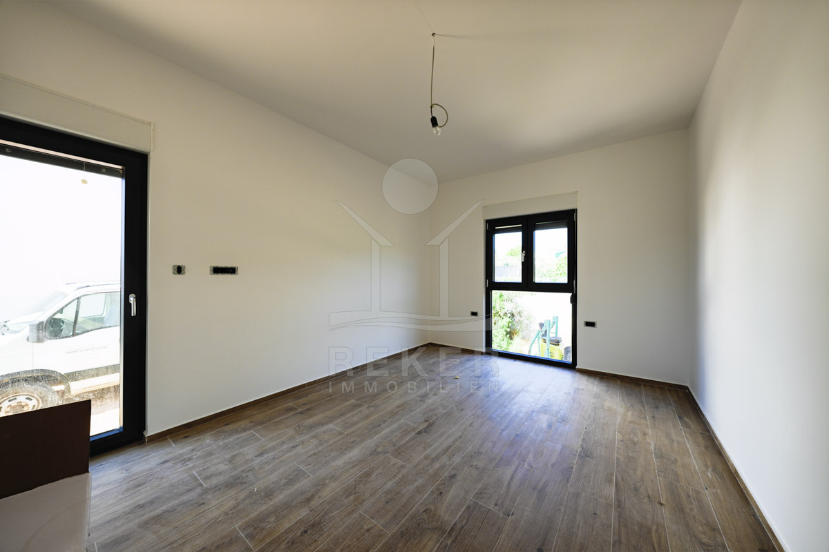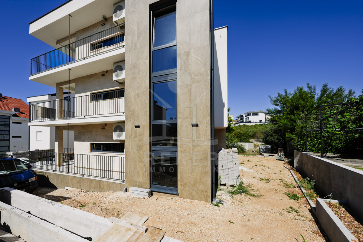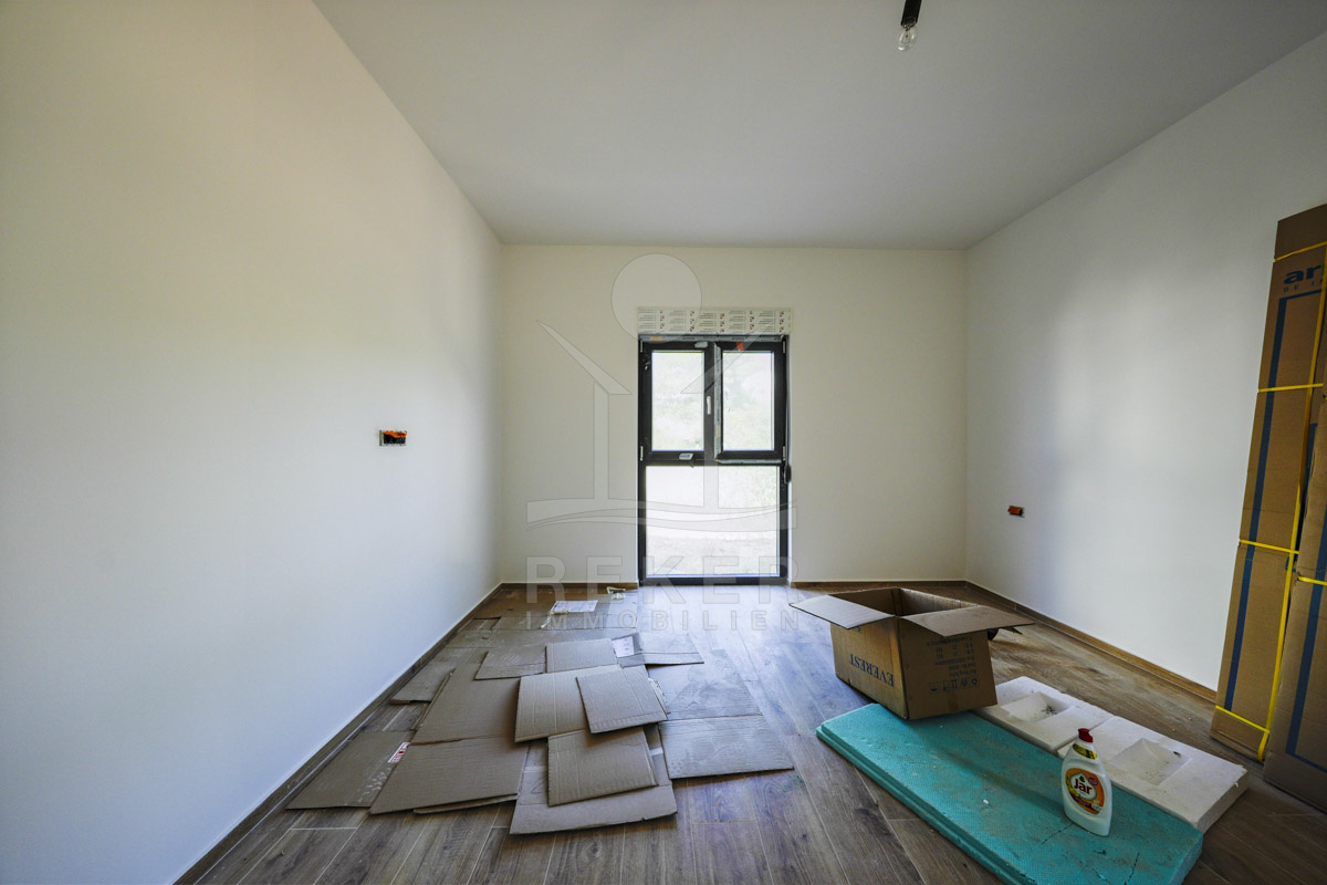 Errichtet im Jahr 2025, ist das Gebäude im Herbst desselben Jahres einzugsbereit. Es umfasst drei Wohnungen, jeweils eine pro Etage. Jede Einheit nimmt die gesamte Ebene ein. Direkte Nachbarn auf derselben Etage gibt es daher nicht. Die Architektur zeigt klare Linien und großzügige Fensterflächen, die dem Haus ein modernes Erscheinungsbild geben. Zu jeder Wohnung gehören zwei Stellplätze direkt vor dem Haus. Im Untergeschoss stehen zusätzliche Abstellräume zur Verfügung.