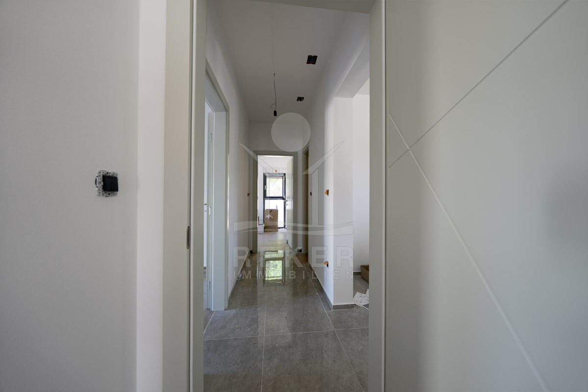 Auf gut 103 Quadratmetern Innenfläche erwartet Sie ein großzügiger Grundriss mit drei Schlafzimmern, zwei Bädern und einem offenen Wohnbereich mit viel Licht. Große Fenster sorgen für angenehme Helligkeit in jedem Raum. In den Bädern und im Wohnbereich sorgt die Fußbodenheizung für angenehme Wärme. Alle Räume sind mit Klimaanlagen ausgestattet. Die Fenster verfügen über Moskitonetze und elektrische Rollläden – praktisch, wenn es mal schnell gehen muss. Hochwertige Keramik und PVC-Tischlerei unterstreichen den modernen Standard.