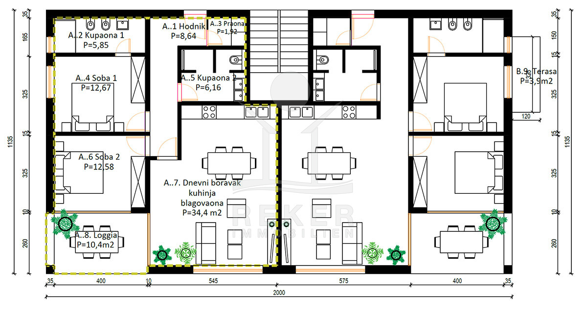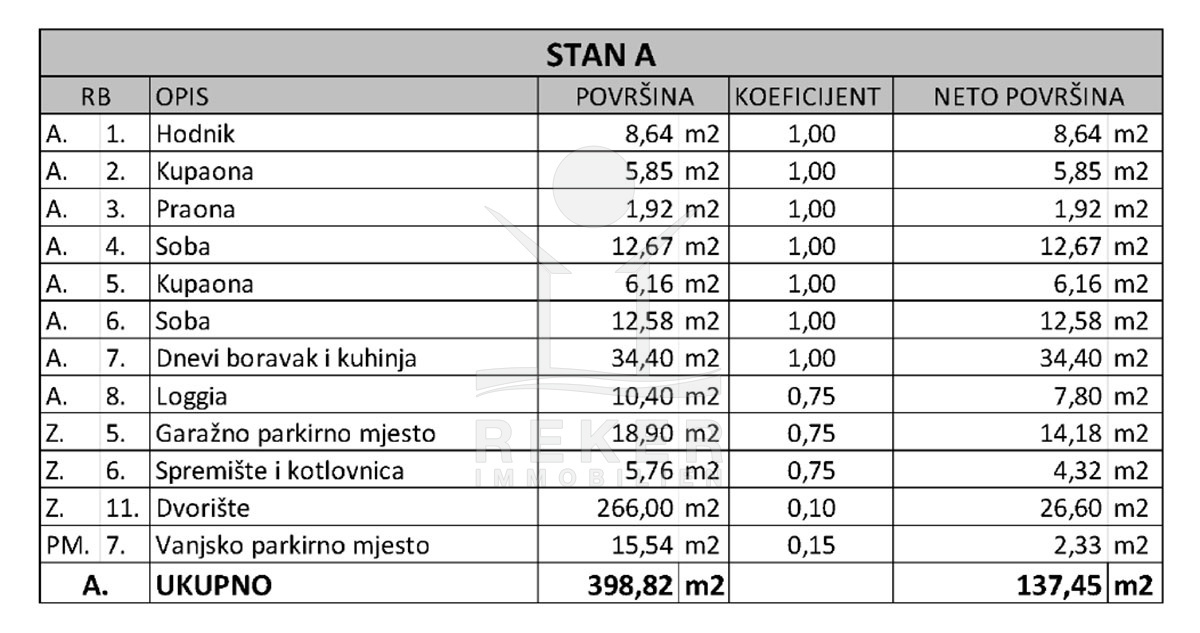 Die 138 m² große Wohnung ist nach Südwesten ausgerichtet und wird den ganzen Tag von Sonne und Licht durchflutet. Mit Fußbodenheizung und Wärmepumpe sorgt sie für angenehme Wärme im Winter und dank der Klimaanlage für angenehme Kühle im Sommer. Der kombinierte Warmwasserspeicher garantiert jederzeit warmes Wasser. Die Wohnung besteht aus einem Flur, einem großzügigen Wohnzimmer mit offener Küche und Essbereich, sowie zwei Schlafzimmern und einem Hauptschlafzimmer mit eigenem Badezimmer. Es gibt außerdem ein weiteres separates Badezimmer, einen Waschraum, eine Loggia sowie Abstell- und Heizraum. Kommen Sie nach Hause und genießen Sie den Komfort und die Helligkeit dieser einladenden Wohnung.
