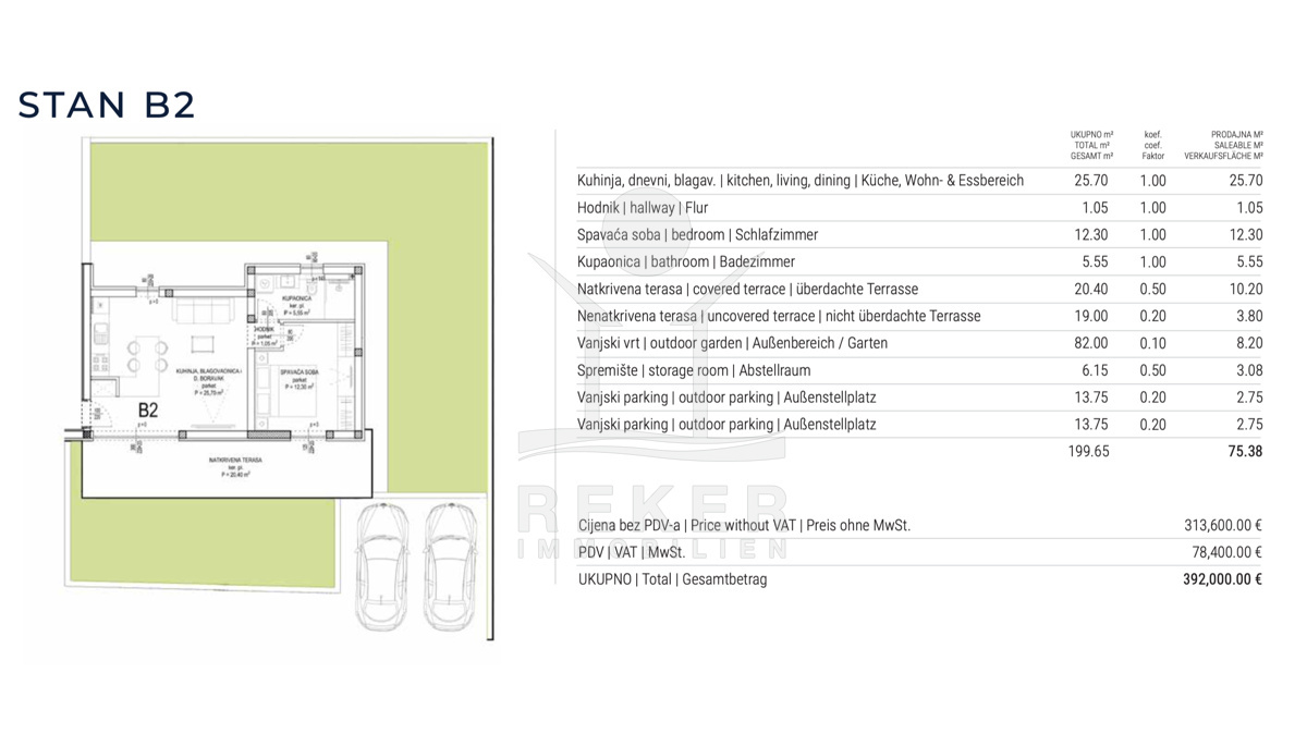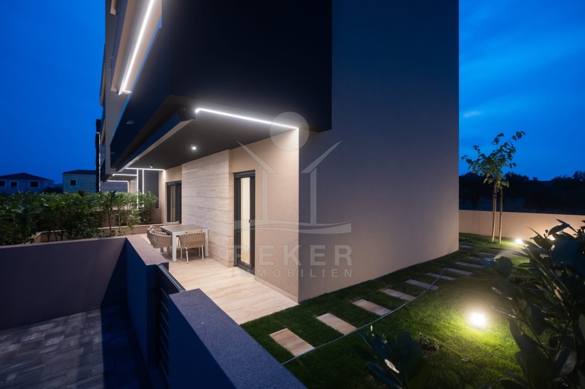 MODERNE 2-ZIMMER-GARTENWOHNUNG MIT MEERBLICK UND ZWEI AUSSENSTELLPLÄTZEN IN SUKOŠAN