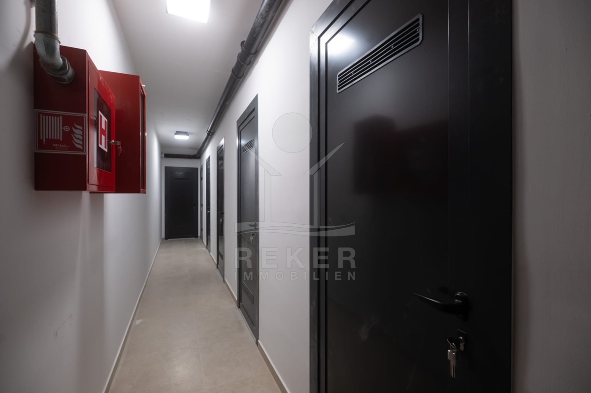 Das Gebäude fügt sich natürlich in seine Umgebung ein. Nur sechs Wohnungen auf drei Etagen bieten Privatsphäre und Großzügigkeit. Jede Einheit profitiert von der südlichen Ausrichtung und viel Tageslicht. POROTHERM-Ziegel mit verstärkter Armierung sorgen für Stabilität und gesundes Raumklima. Große Glas-Schiebetüren im REHAU-System bringen Helligkeit und Offenheit in jeden Raum. Das STO-Fassadensystem schützt dauerhaft und unterstreicht das klare Design. Römischer Travertin mit warmer Struktur akzentuiert Balkone und Treppen und betont den mediterranen Stil. Ein Aufzug verbindet alle Etagen und sorgt für bequemen Zugang. Zwei eigene Außenstellplätze direkt vor der Tür sorgen für bequemen Komfort.