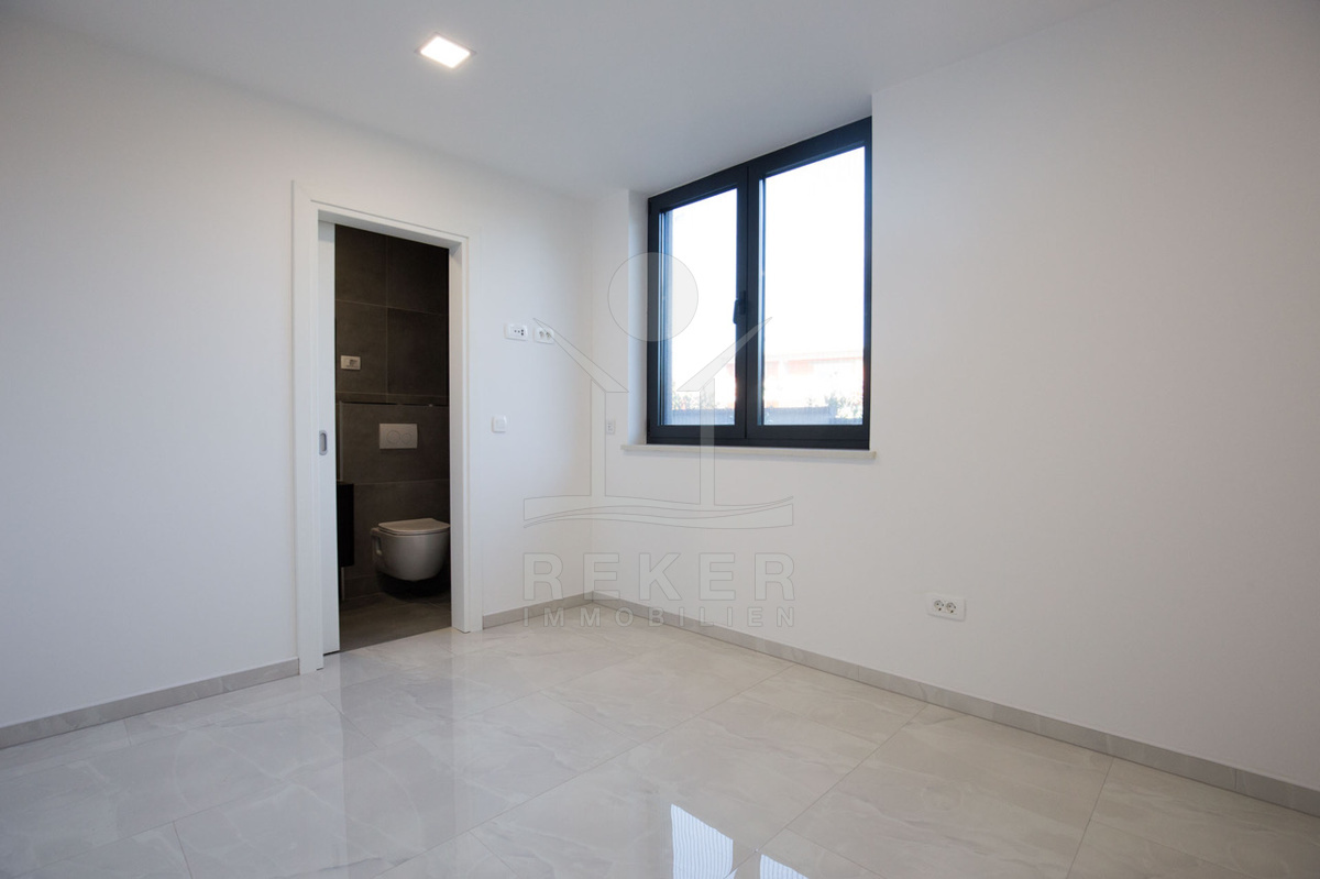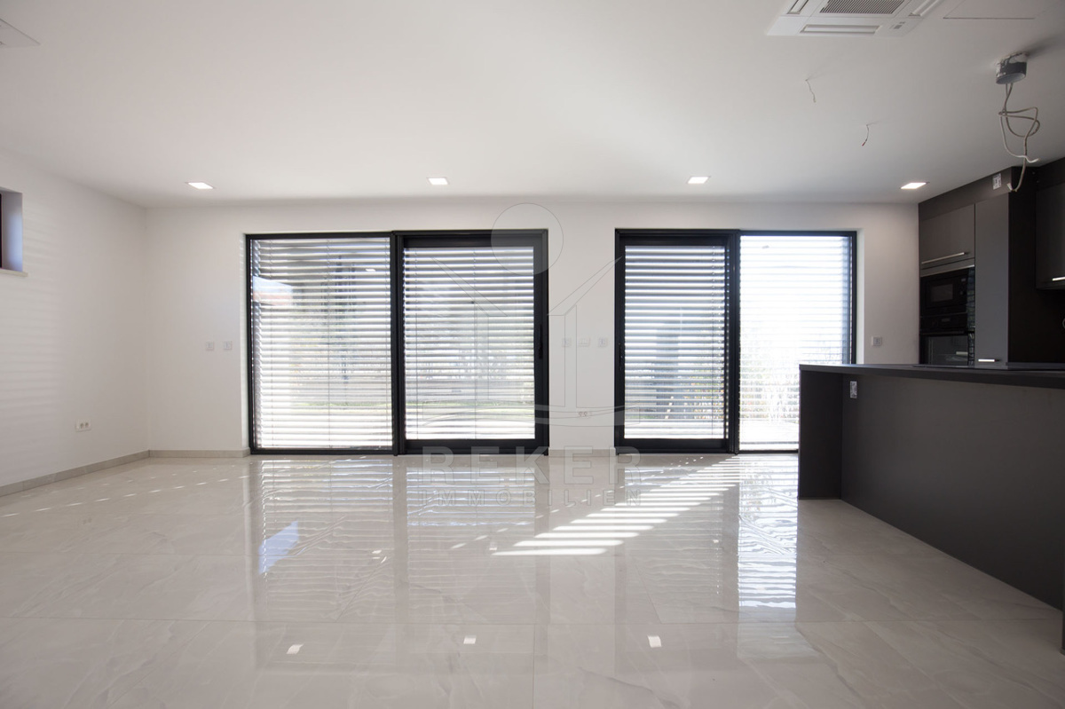 Das Apartment liegt im Erdgeschoss in einem exklusiven Neubau mit insgesamt 3 Wohneinheiten. Das Gebäude wurde im Jahr 2023 errichtet und bietet modernste Ausstattung sowie hochwertigste Materialien namhafter Hersteller. Die Wohnung verfügt über eine effiziente Wärmepumpe sowie eine solarbetriebene Warmwasserheizung. Zur Sicherheit bietet das Gebäude eine Videoüberwachung und eine Video-Gegensprechanlage. Die hochwertige italienische und spanische Keramik, der Stein und die Aluminiumschreinerei mit dreifach verglasten Fenstern verleihen der Wohnung ein luxuriöses Ambiente. Elektrische Außenjalousien sorgen für Privatsphäre und Komfort.