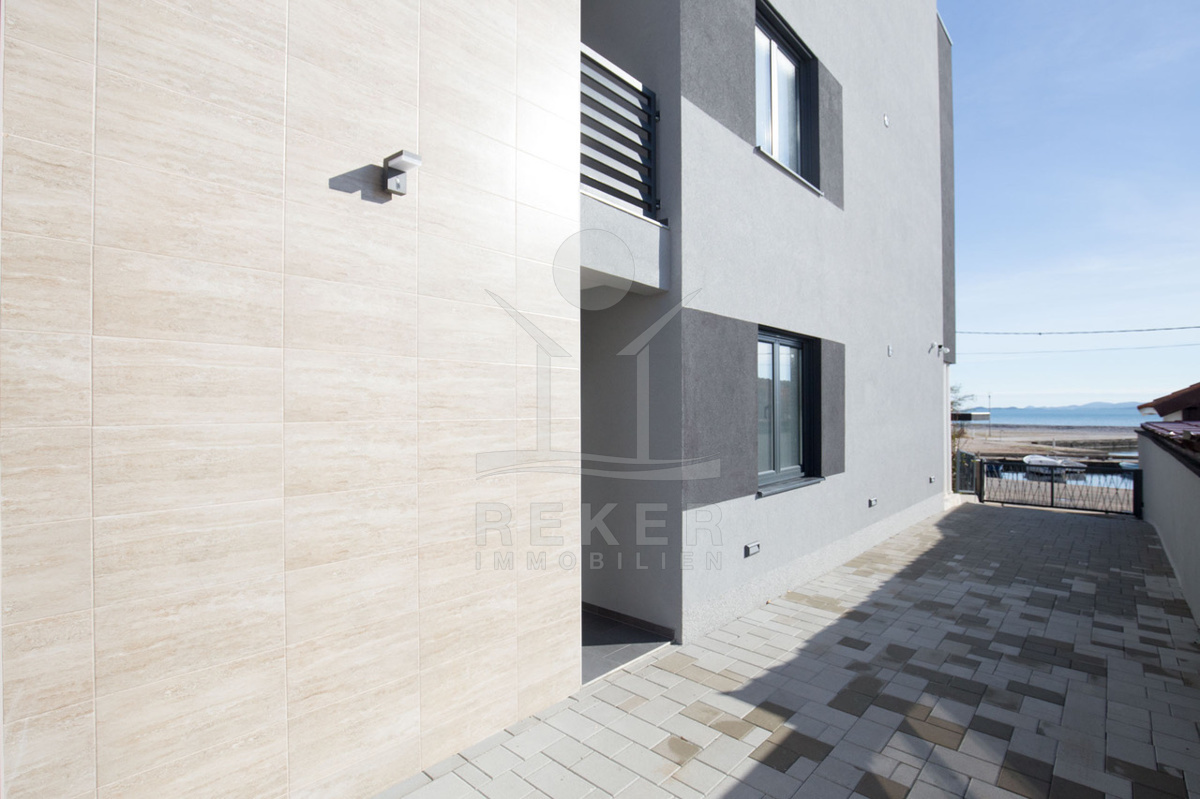 Die einzigartige Erdgeschosswohnung befindet sich in einer stilvollen Stadtvilla in einer herausragenden Umgebung. Die Immobilie besticht nicht nur durch ihre moderne Ausstattung, sondern auch durch ihre unmittelbare Nähe zum Meer - nur unglaubliche 5 Meter trennen Sie von den sanften Wellen der Adria. Ein angelegter Strand ist auch nur 50 Meter entfernt, sodass Sie die Sonne und das Meer direkt vor Ihrer Haustür genießen können. Die charmante Stadt Sukošan mit ihren Restaurants, Bars und Geschäften ist ebenfalls bequem zu Fuß erreichbar. Hier können Sie das mediterrane Flair dieser Küstenregion voll und ganz erleben.