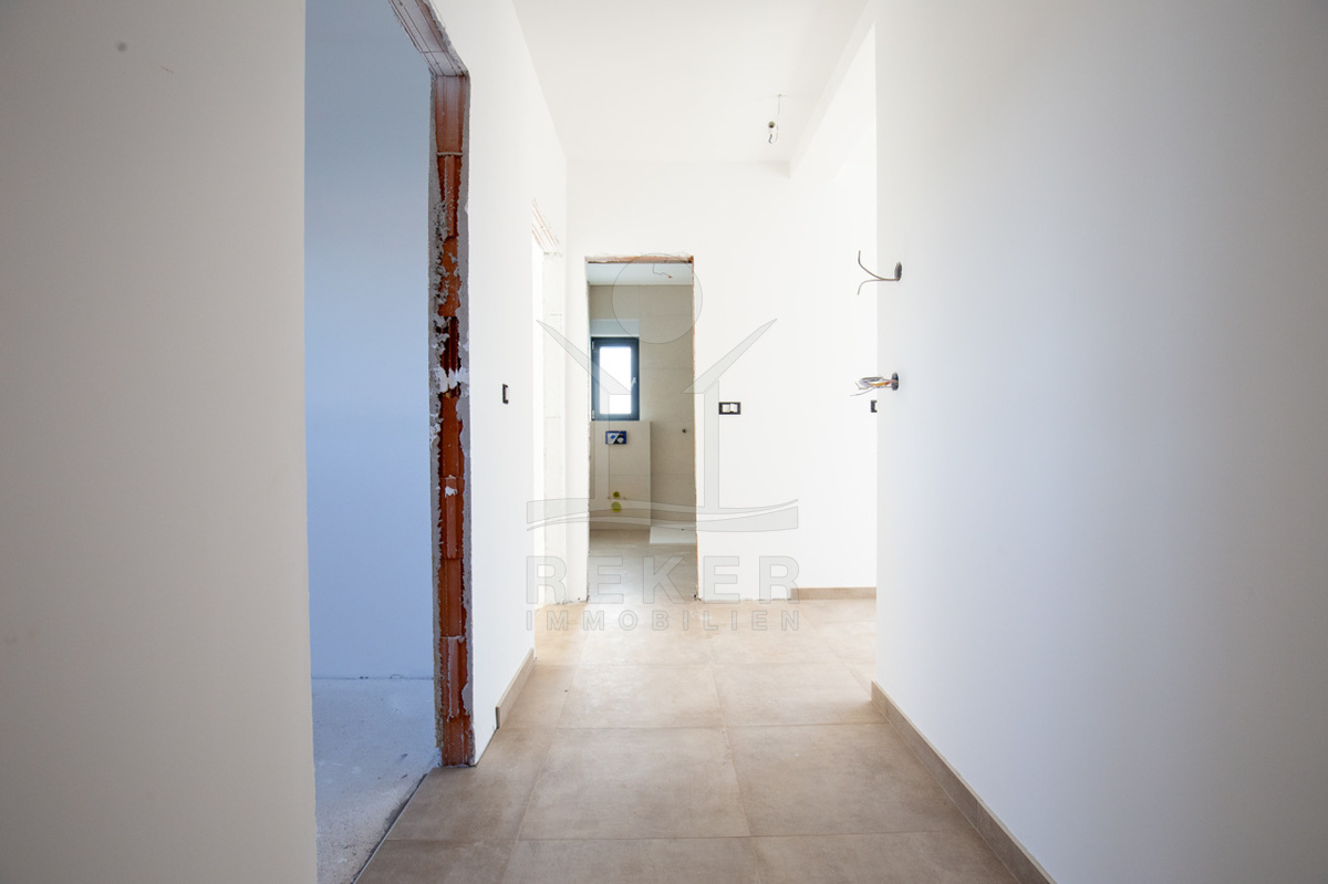 In Sukošan, einem beliebten Küstenort in Dalmatien, entsteht ein modernes Wohnhaus, nur 250 Meter vom Meer entfernt. Die südwestliche Ausrichtung sorgt für helle Räume und angenehme Sonnenstunden am Nachmittag. Das Umfeld ist ruhig, grün und vermittelt ein Gefühl von Leichtigkeit. Ein Ort, an dem Wohnen und Erholung selbstverständlich zusammenfinden.