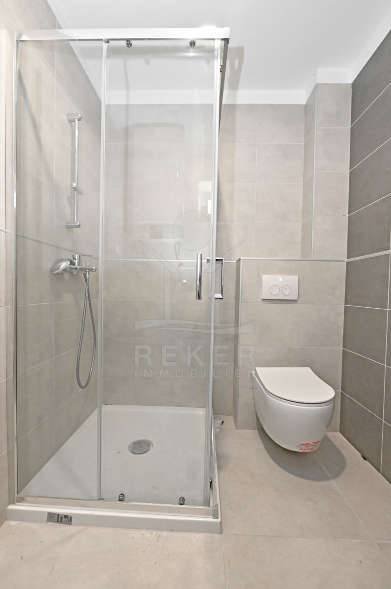 Das Apartment im Erdgeschoss verfügt über eine Gartenfläche von 50 m². In einem Gebäude mit insgesamt 8 Wohnungen gelegen, zeichnet sich der Neubau durch eine hochwertige Ausstattung und optimale Energieeffizienz aus. Die Außenschreinerei besteht aus PVC-Schreinerei mit 3-fach-Verglasung in Anthrazitfarbe und Jalousien an allen Fenstern. Im Inneren sorgt eine elektrische Fußbodenheizung mit separater WLAN-Steuerung in jedem Raum für Behaglichkeit, während die Inverter-Klimaanlage von Mitsubishi Heizung und Kühlung reguliert. Mit Baujahr 2023 ist die Wohnung bezugsbereit. Eine Garage mit 12,10 m² und Abstellraum 10 m² im Keller des Gebäudes stehen zur Verfügung und runden das Angebot ab.