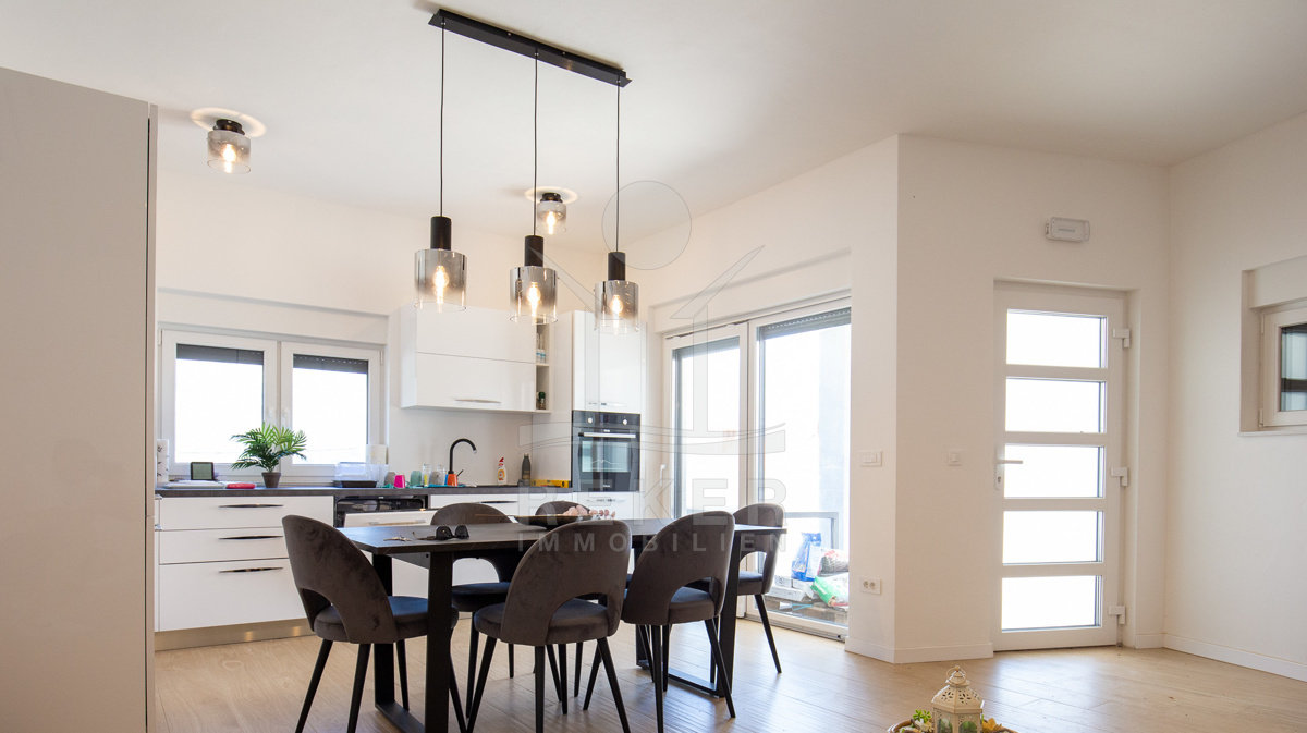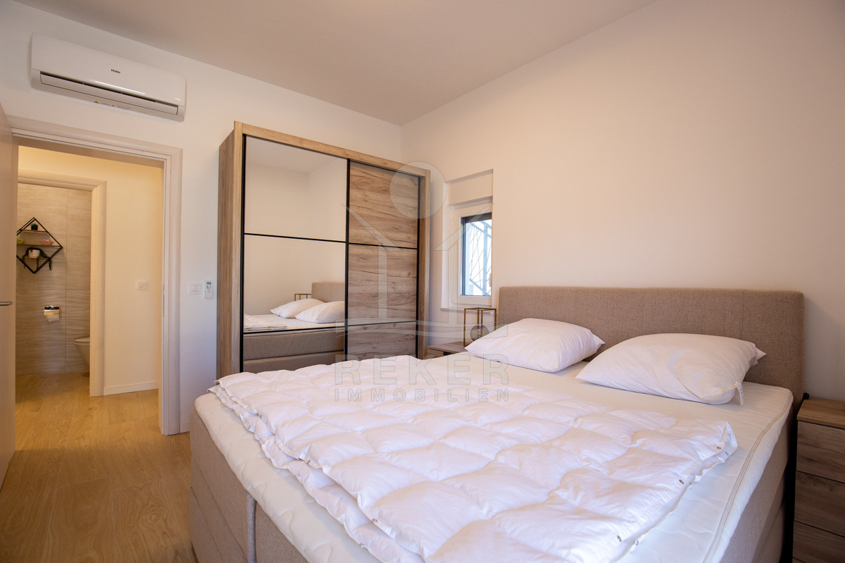 Das exklusive Apartment liegt im Erdgeschoss in einem Wohngebäude an einem Hang, umgeben von einer niedrigen Steinmauer und bietet eine traumhafte Aussicht auf die umliegende Natur. Das Gebäude erstreckt sich über 3 Etagen, wobei die Erdgeschosswohnung über 116 m² Wohnfläche verfügt. Die Fertigstellung erfolgte erst im Jahr 2023 und die Ausstattung beeindruckt mit einer Klimaanlage in jedem Zimmer, elektrischen Jalousien und Moskitonetzen für extra Komfort. Ein eigener Parkplatz rundet das exklusive Wohnangebot perfekt ab und bietet zusätzlichen Komfort für die Bewohner.
