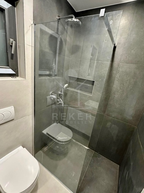 Klimatisierung in allen Räumen sowie elektrische Fußbodenheizung in den Badezimmern sorgen für spürbaren Komfort. Elektrische Jalousien, Moskitonetze, großformatige Keramikfliesen im Format 90 × 90 mm, Travertin, Gebrite-Fliesen, Sanitärkeramik von Grohe, maßgefertigte Badezimmermöbel und LED-Ambientebeleuchtung in allen Räumen unterstreichen den hochwertigen Ausbaustandard. Zur Wohnung gehört ein 12,5 m² großer Außenstellplatz direkt vor dem Haus.