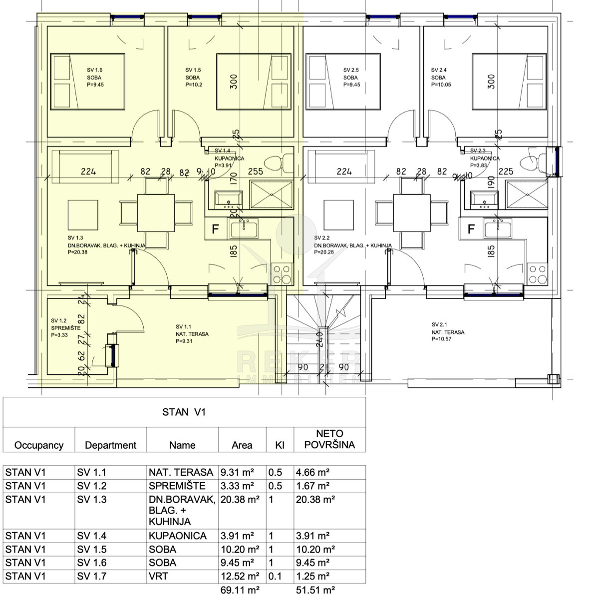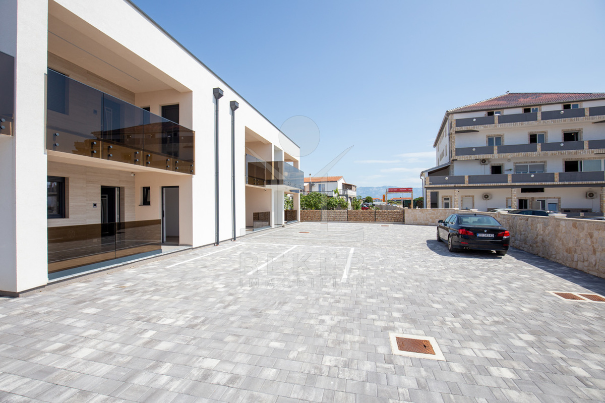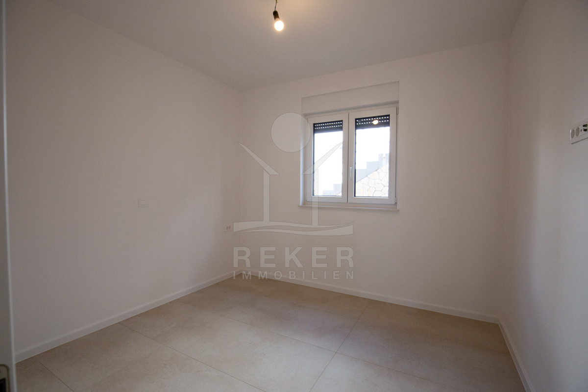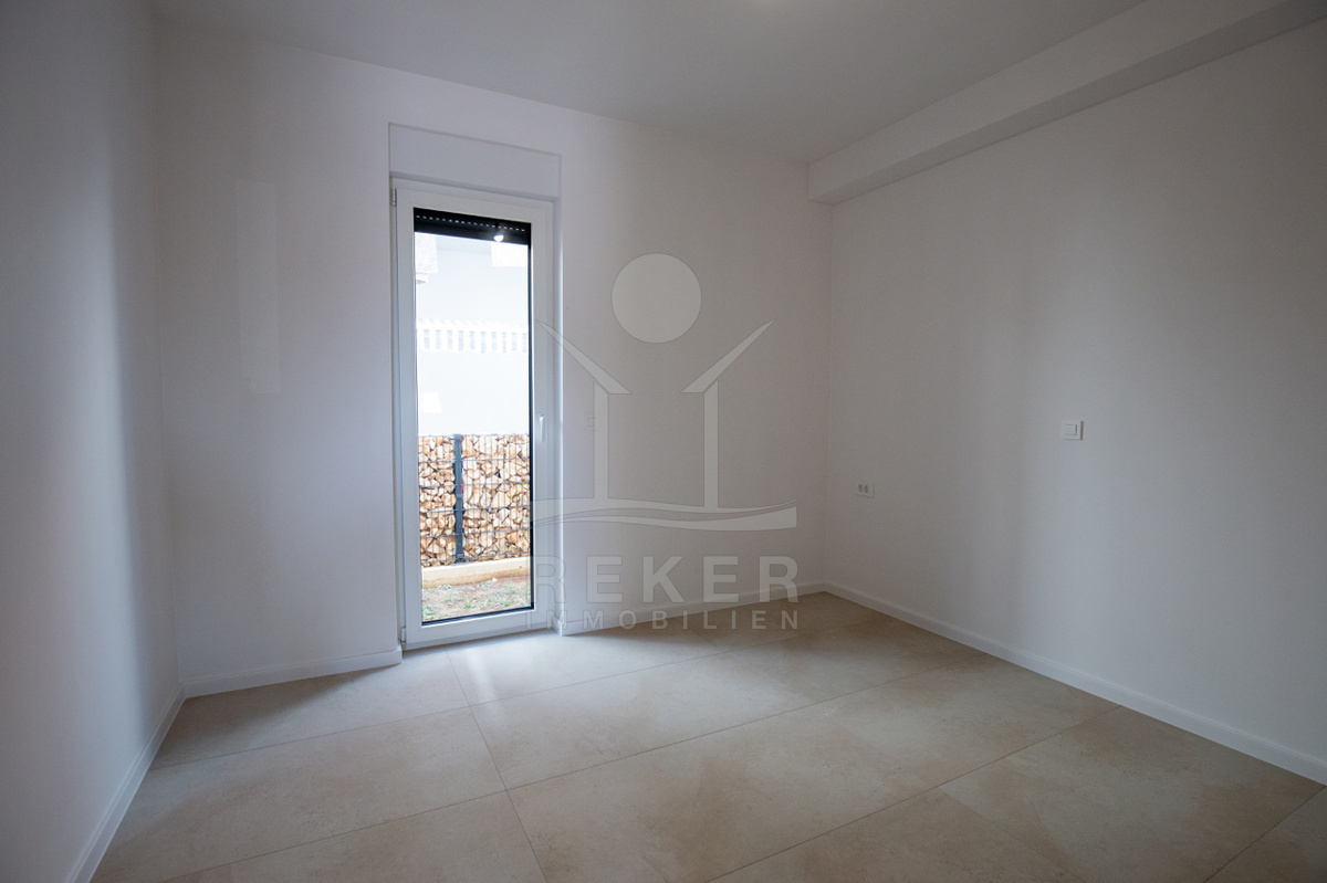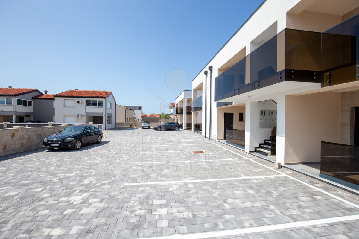 In der Stadt Vir, auf der gleichnamigen Insel, wohnen Sie hier ruhig, aber nie abgeschieden. Alles, was man im Alltag braucht, ist gut erreichbar. Die Umgebung ist gepflegt, modern bebaut und frei von Durchgangsverkehr. Ein paar Schritte genügen – und Sie stehen am Strand. Das Gebäude wurde 2025 fertiggestellt und überzeugt mit klarer, moderner Architektur. Insgesamt sechs Wohnungen verteilen sich auf zwei Etagen, je drei unten und oben. Jede Wohnung hat ihren eigenen Zugang. Vor dem Haus sind gepflasterte Flächen und für jede Wohnung ein eigener Parkplatz. Oben laden große Balkone mit Glasbrüstung zum Draußensitzen ein, unten gibt es überdachte Terrassen.