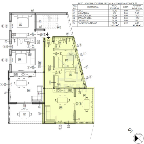 Vodice, ein ruhiges Wohnviertel, rund 700 Meter vom Zentrum entfernt. Auch zum Strand sind es nur wenige Gehminuten. Die Umgebung ist grün, locker bebaut und angenehm still. Das Gebäude wirkt modern, klar, aufgeräumt. Drei Etagen, sechs Wohnungen. Pro Stockwerk zwei Einheiten. Die Fertigstellung ist für Sommer 2026 geplant. Dann ziehen Sie schlüsselfertig ein. Vor dem Haus: ein Parkplatz pro Wohnung.