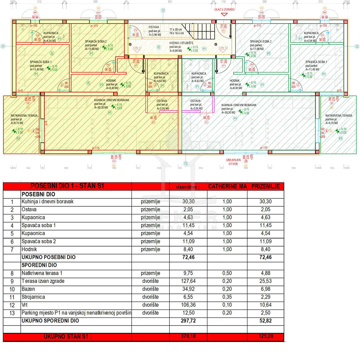 Die Erdgeschosswohnung umfasst 72,45 m² Wohnfläche. Sie bietet einen großzügigen Wohnbereich, zwei Schlafzimmer und zwei Badezimmer. Eines der Schlafzimmer hat ein eigenes Bad. Fußbodenheizung, elektrische Rollläden und Klimaanlagen in allen Räumen sorgen für hohen Wohnkomfort. Dazu kommt die Ausstattung mit moderner Keramik.