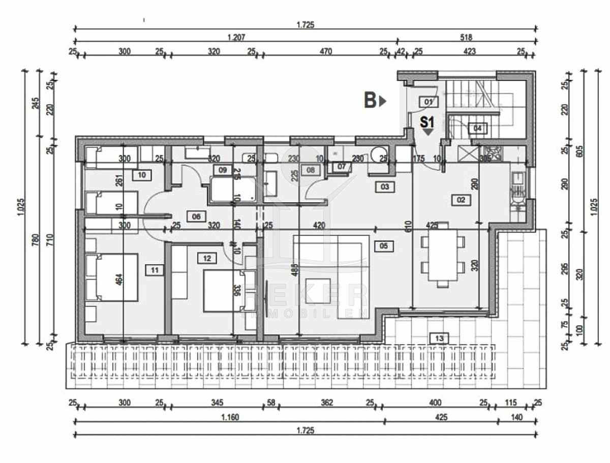 Das geräumige Erdgeschosswohnung bietet eine Wohnfläche von 126 m² mit einem großzügigen Eingangsbereich, einem Wohn- und Esszimmer, einer praktischen Küche, 3 Schlafzimmern, einem Badezimmer und einem separaten WC. Genießen Sie die frische Luft auf der Terrasse und verbringen Sie dort schöne Stunden im Freien.