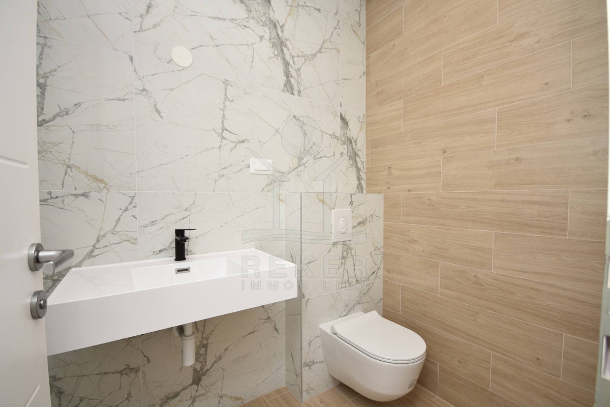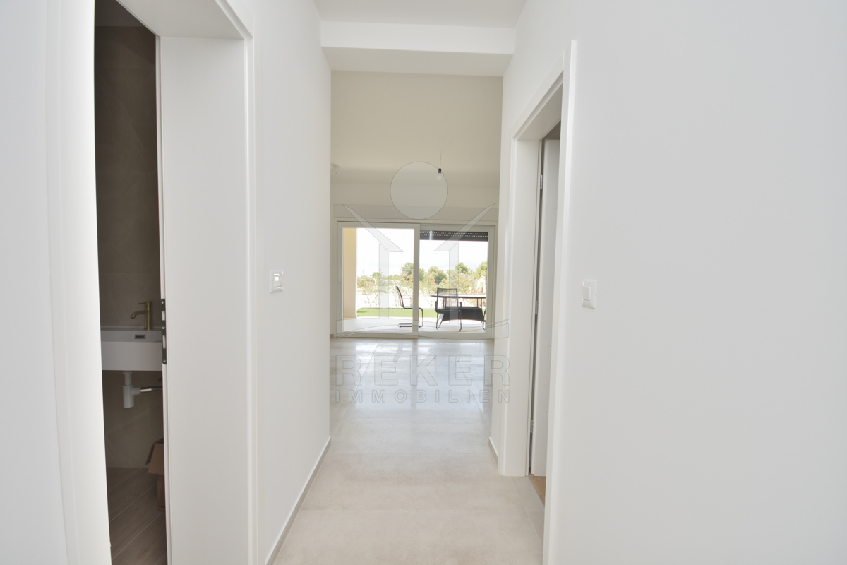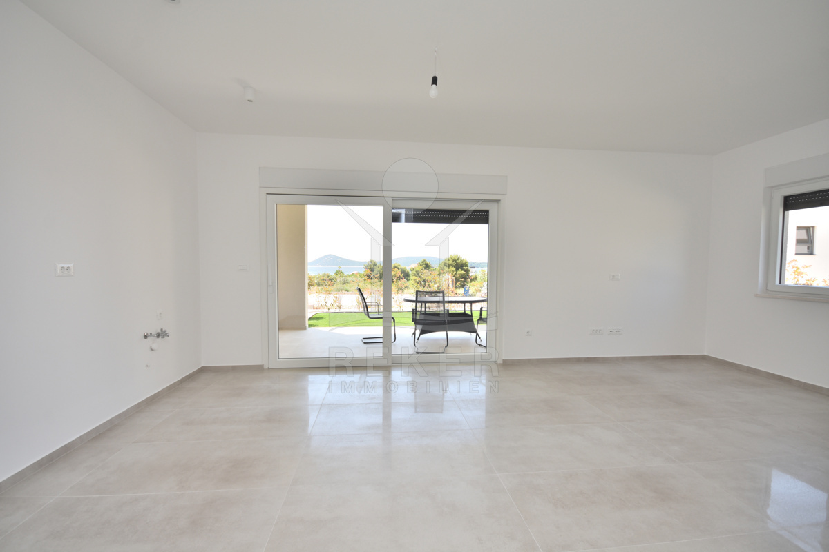 Vodice liegt an der dalmatinischen Küste – beliebt, gewachsen und dennoch ruhig. Genau dort entsteht dieses neue Wohnhaus. Das Meer ist in Sichtweite. Der nächste Strand? Frisch gestaltet und zu Fuß erreichbar. In der Nachbarschaft: neue Wohnhäuser, gepflegte Straßen, viele Einheimische, aber auch Ruhe für Zweitwohnsitz oder Rückzug. Das Gebäude hat drei Etagen und wirkt klar, modern und hochwertig. Sechs Wohnungen teilen sich den Neubau – jede mit großzügigen Außenbereichen. Die Fassade ist gedämmt, die Bauweise folgt modernen Standards. Vor dem Haus: gepflasterte Stellplätze, rundherum gepflegte Grünfläche mit niedriger Begrenzungsmauer. Ruhige Atmosphäre. Solide Privatsphäre.